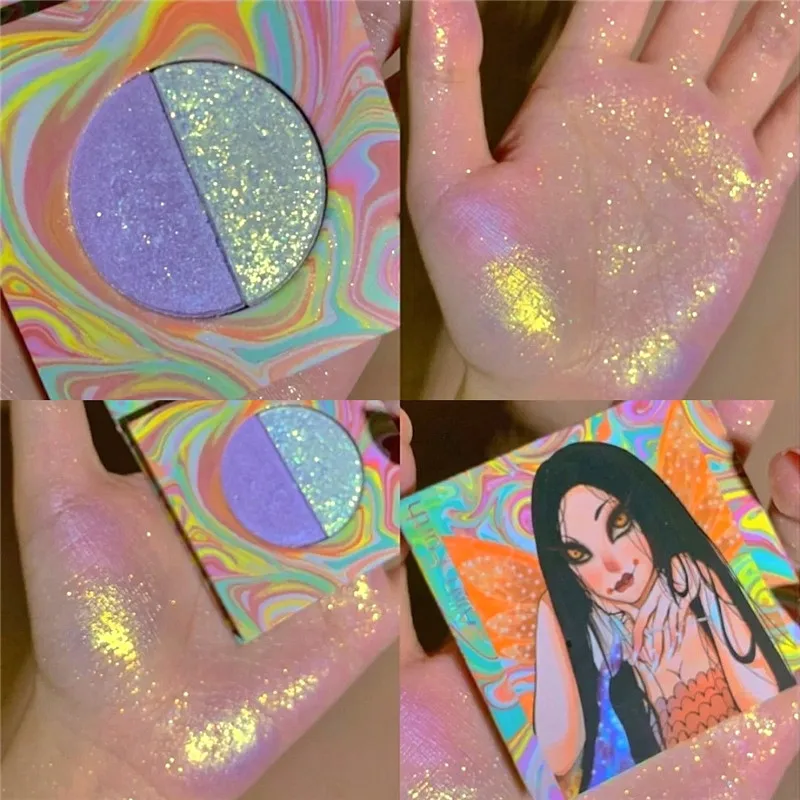Дьявол двухцветный мерцающий и сияющий хайлайтер пудра глиттер хайлайтер палитра осветляет тело контур лица макияж