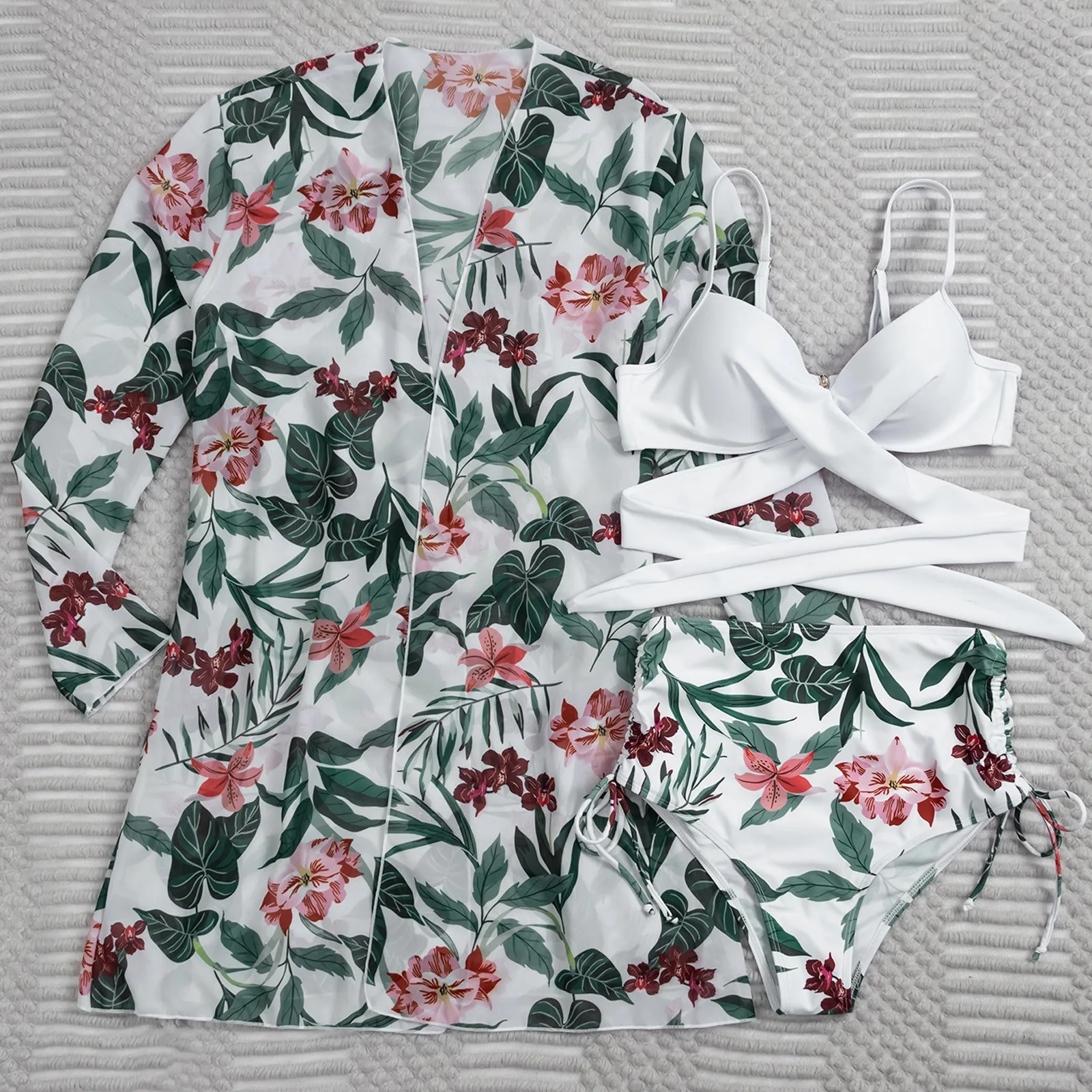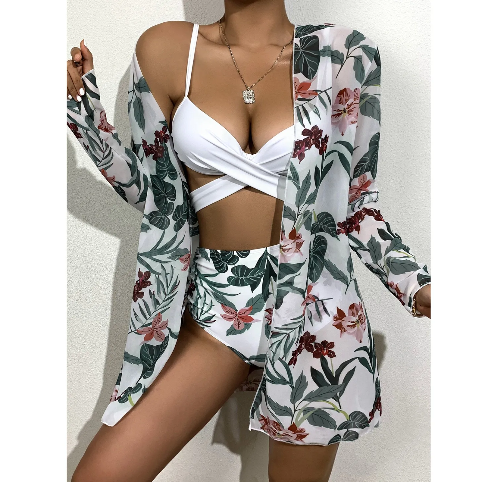 Женская куртка без позиционирования с длинными рукавами и принтом, купальник с разрезом на бретельках, летняя пляжная одежда, купальник, Женский сексуальный купальник