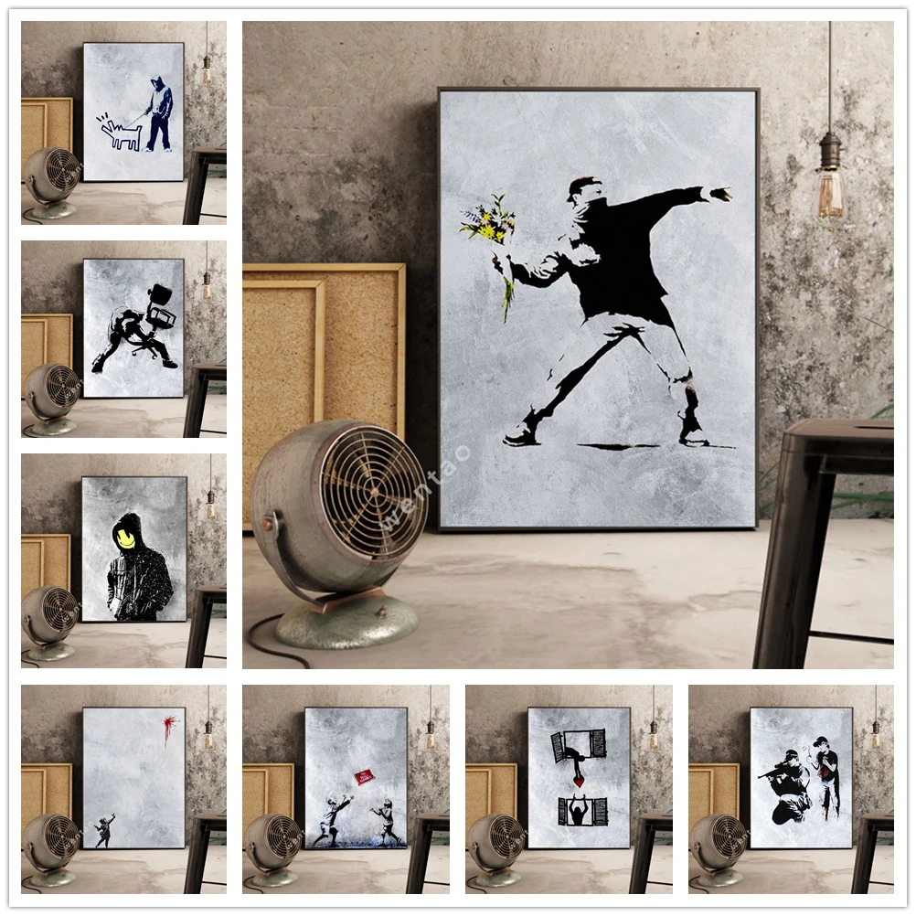 Классический граффити от Бэнкси, Художественная Картина на холсте и...