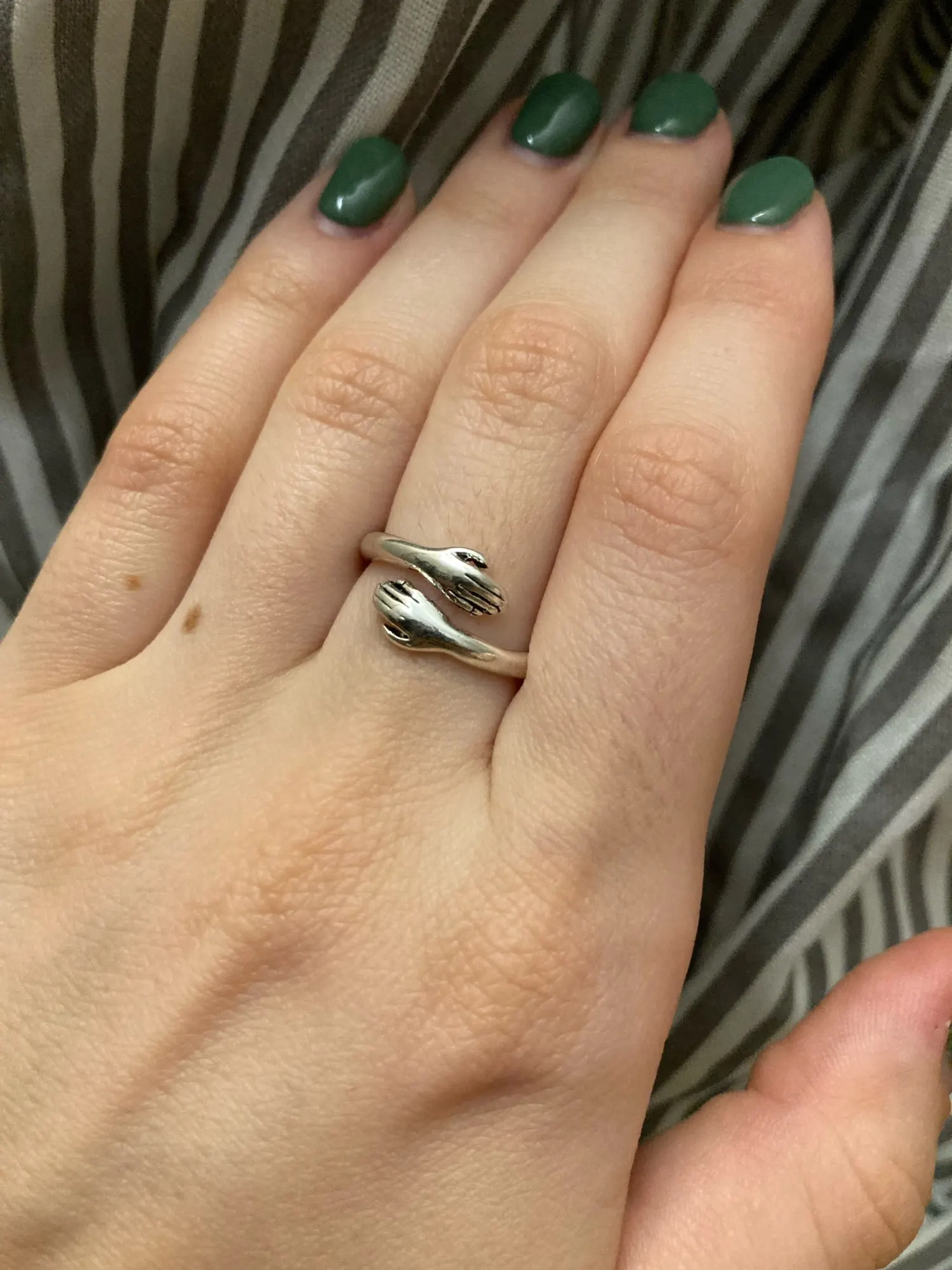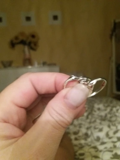 ужасное качество кольца, сплав хрупкий,по внутреннему радиусу все черное, ну и наконец то, с чего нужно было начать - я его так и не поносила, надела на средний палец - мало, решила отрегулировать, легонько потянула за эти маленькие ручки в разные стороны - разломалось на две части. спасибо блин