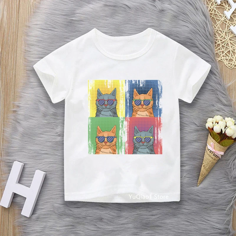 Детская футболка с коротким рукавом, с принтом животных и кошек
