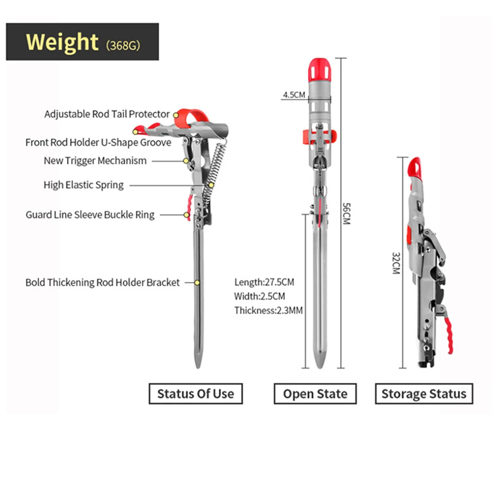 Особенности: + Товар: автоматический кронштейн для удочки + Держатель удочки из нержавеющей стали + Длина держателя для удочки 32 см, небольшой размер для удобной рыбалки, удобный для переноски. + Длина вставки Земли составляет 27,5 см, глубоко в почву, прочная и мощная. + Не беспокойтесь, что удочка будет сдута ветром, мы используем треугольную вилку, которая более стабильна, чем обычная продукция. + Попрощайтесь с регулировкой снаряжения, одним касанием за раз, подходит для всех рыб. + Эластичная Лапка, ножом рыбы становится сильнее, независимо от того, насколько большая или маленькая рыба трудно сбежать. + Высокая эластичность, не кладите руку в красную область во время использования, чтобы предотвратить пощипывание. Характеристики + Материал: нержавеющая сталь + Длина хранилища: серебристо-красный: 32 см + Увеличить длину: Серебристо-Красный: 56 см Серебро: 47 см + Длина вставки заземления Серебристо-Красный: 27,5 см Серебро: 17,5 см + Ширина Серебристо-Красный: 2,5 см Серебро: 5 см + Ширина Серебристо-Красный: 2,5 см Серебро: 5 см Упаковочный лист 1 шт * Автоматическая опора для удочки
