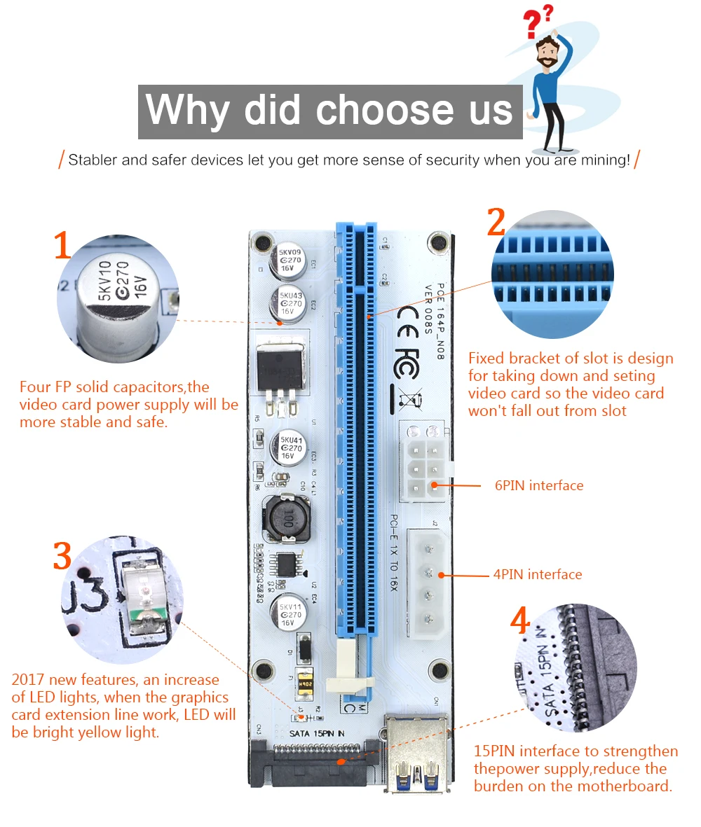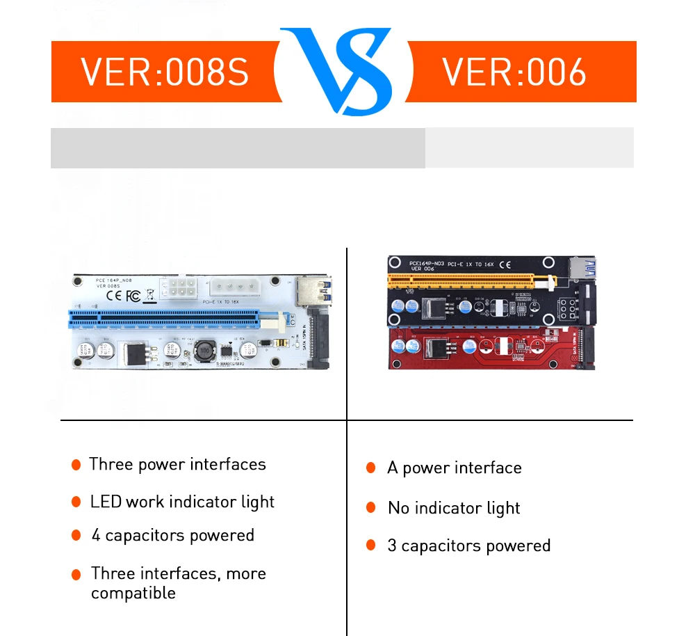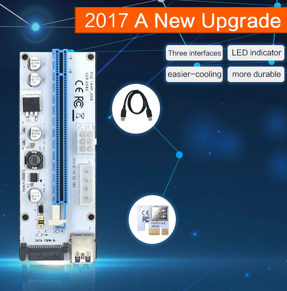 6 шт., Райзер-карта PCI-E, VER008S, SATA, PCIE, PCI Express, USB3.0...