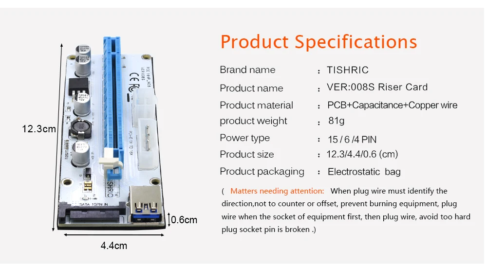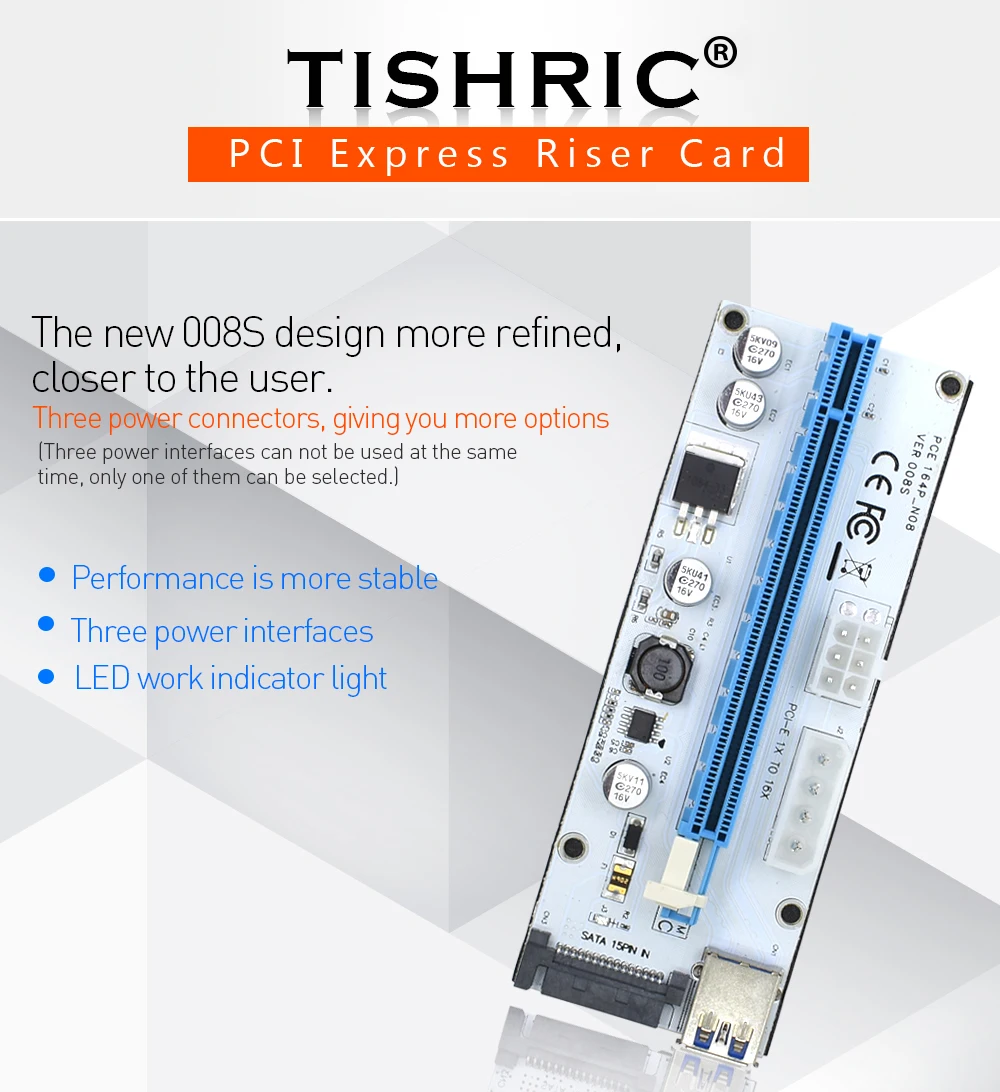 Райзер-карта TISHRIC VER008S PCIE PCI-E 008s 3 в 1 Molex 4Pin SATA ...