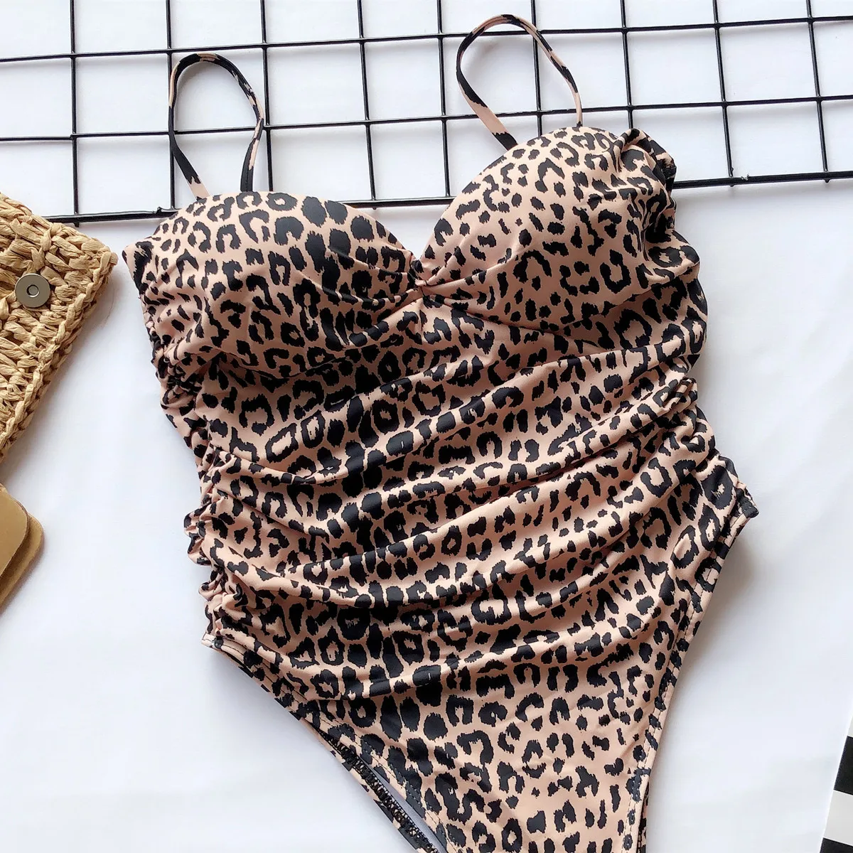 Купальник женский с высокой посадкой, однотонный купальник с леопардовым принтом, пуш-ап, пикантный купальник с подкладкой, 2021