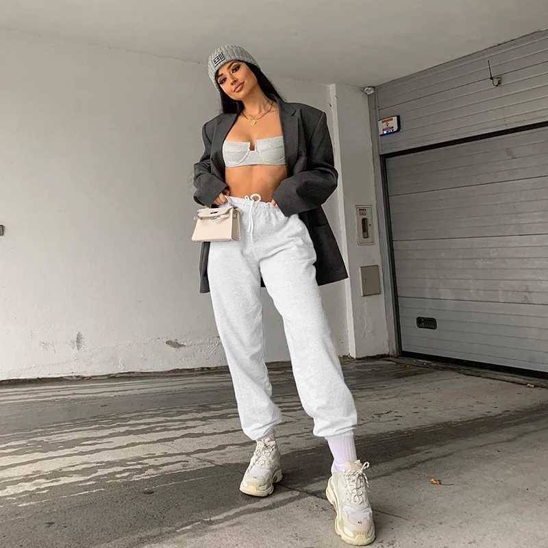 Брюки женские с завышенной талией, мешковатые тренировочные Капри, повседневная одежда в стиле хип-хоп, свободные спортивные штаны для бега, уличная одежда