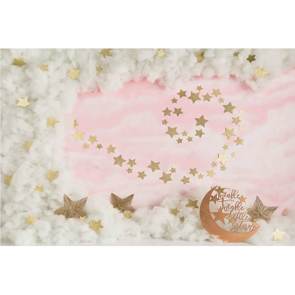 Розовый фон для фотосъемки новорожденных с изображением мигающей маленькой звезды торта на день рождения золотые звезды портрет малыша белые облака