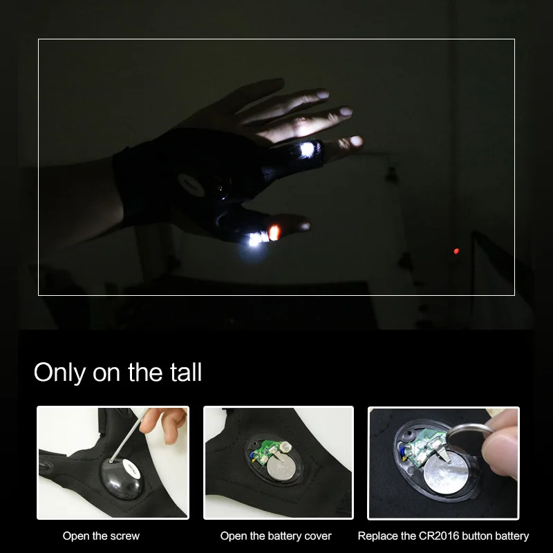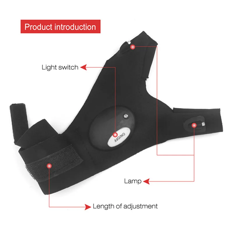 Водонепроницасветильник перчатки со светодиодный Ной вспышкой могут заменить батарею светодиодной ламсветильник для ночного чтения, мастеров на все руки, рыбалки, бега