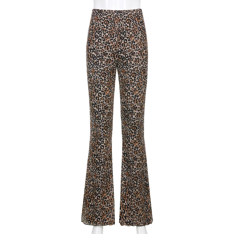 Женские леопардовые брюки Y2K с высокой талией, коричневые расклешенные брюки, двухслойные сетчатые Брюки для девушек, женские спортивные брюки, леггинсы для женщин