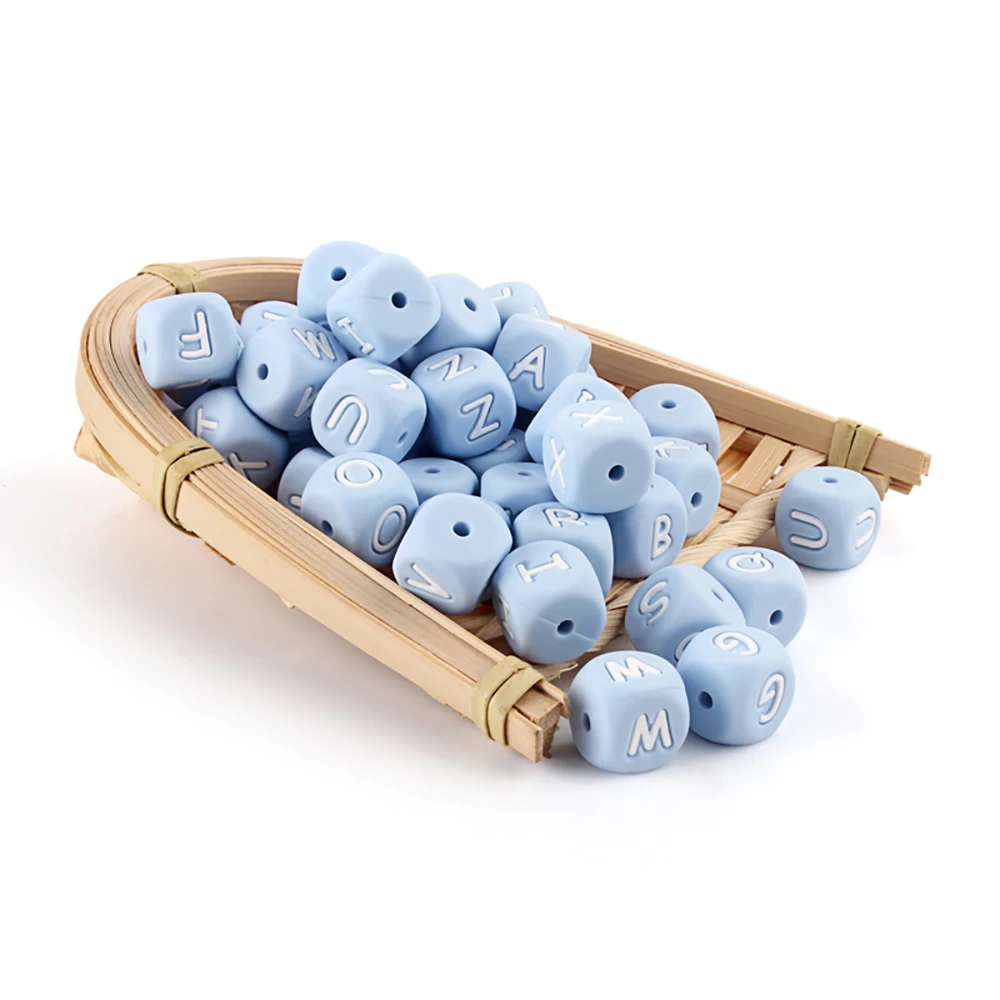 10 шт., алфавит, английские силиконовые бусины с буквами, 12 мм, BPA бесплатно, пищевая детская игрушка для прорезывания зубов, синий, зеленый, серый, черный, розовый силиконовый шарик