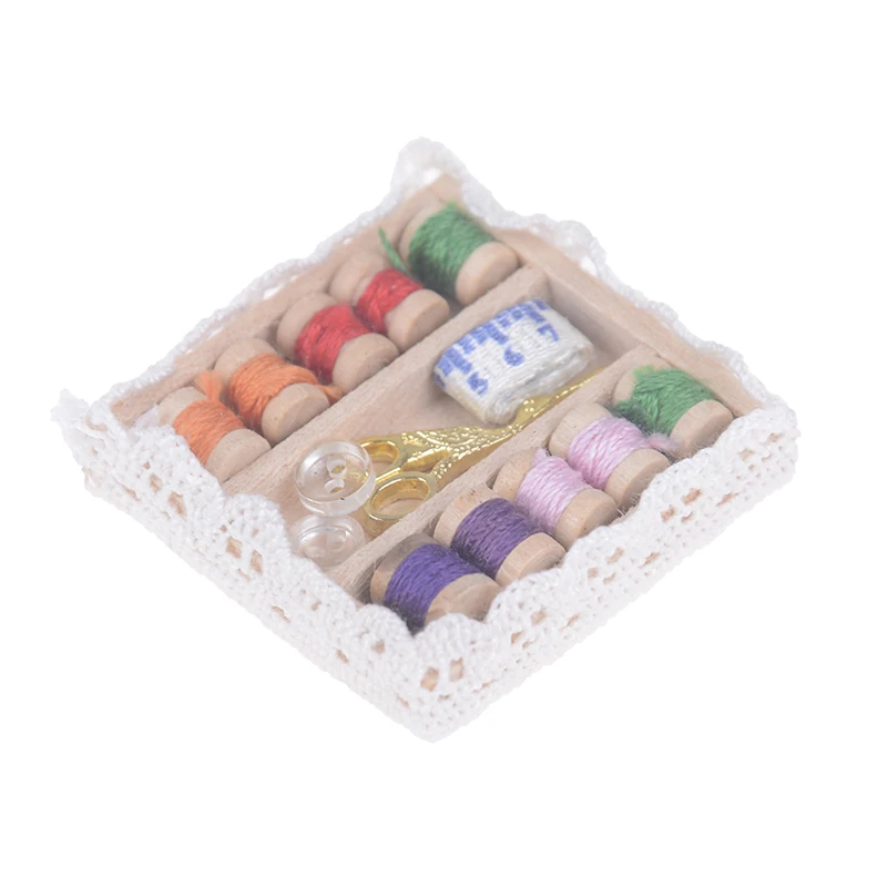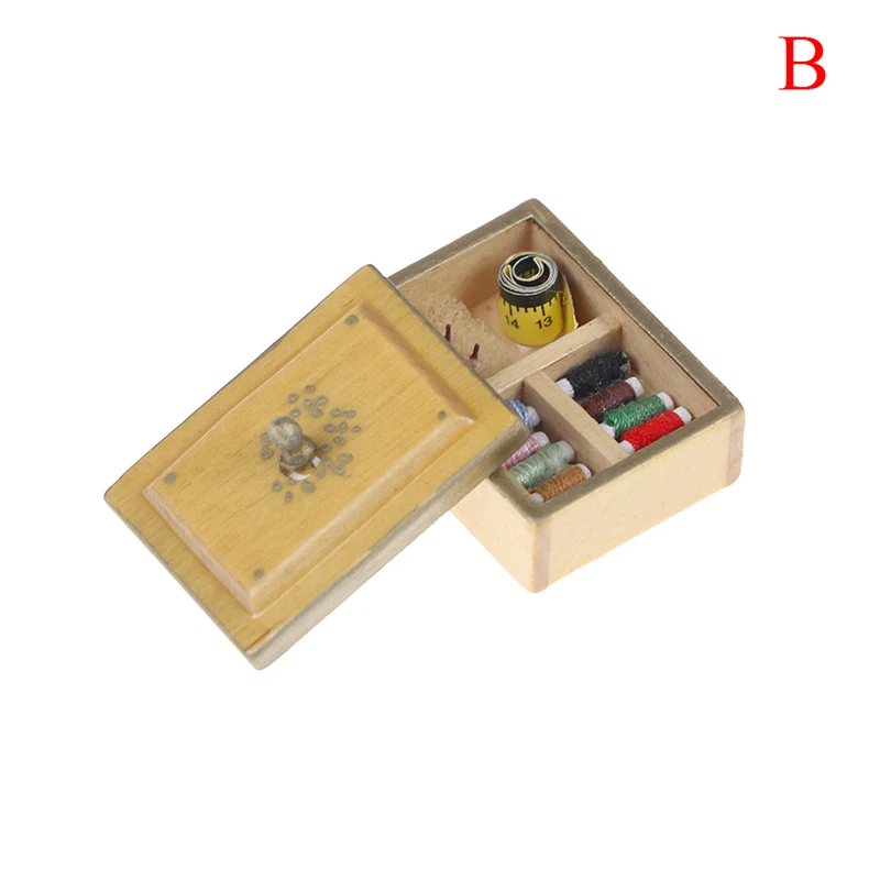 1:12 миниатюрная винтажная деревянная швейная коробка с иглой, набо...