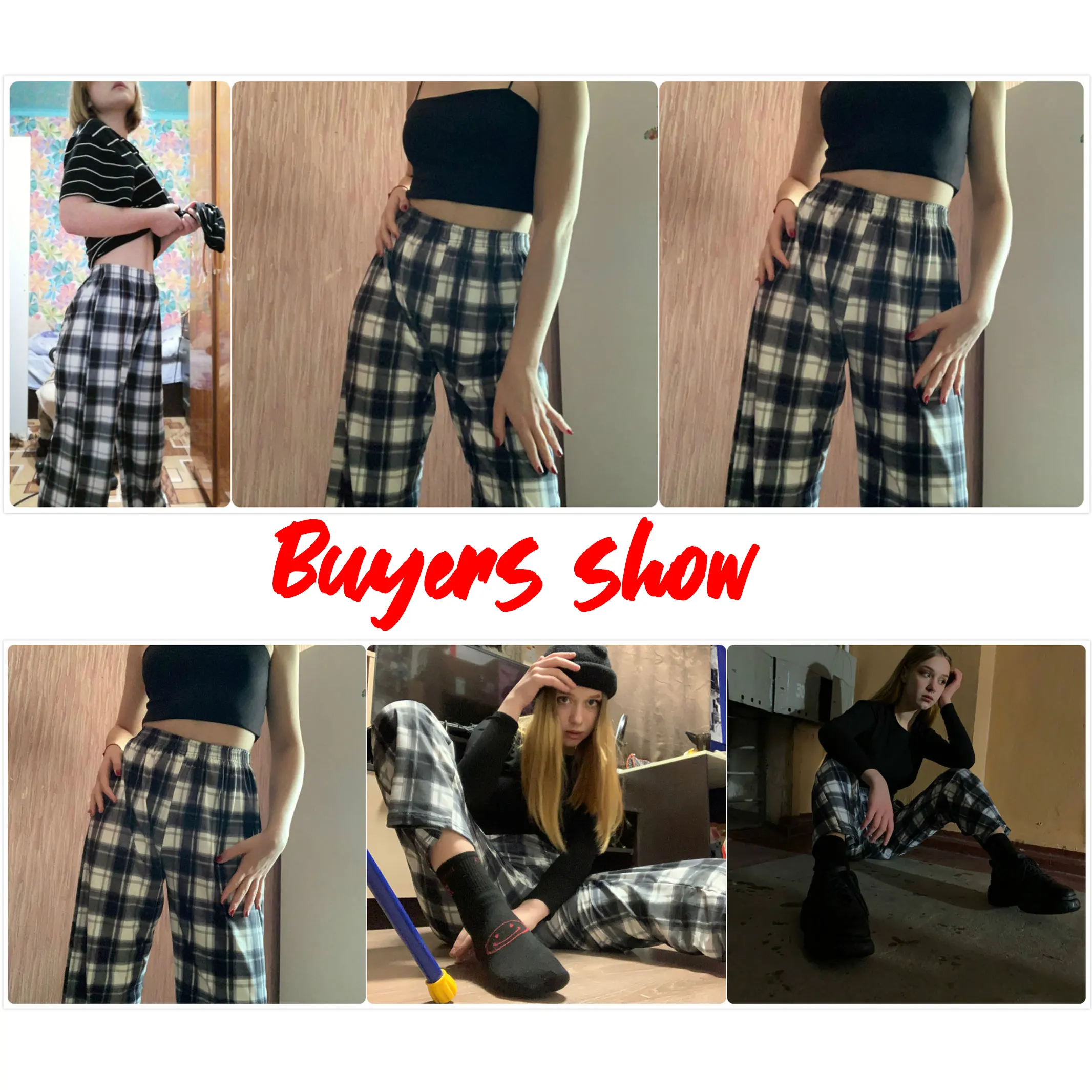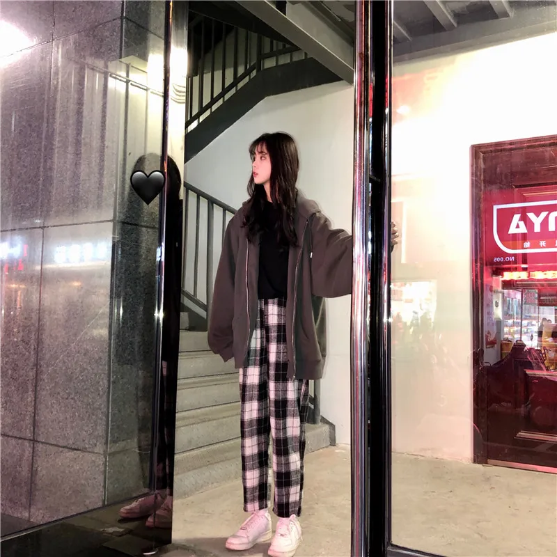 Женские клетчатые брюки в стиле Харадзюку, уличная одежда 2021, женские брюки-султанки, осенние женские повседневные брюки
