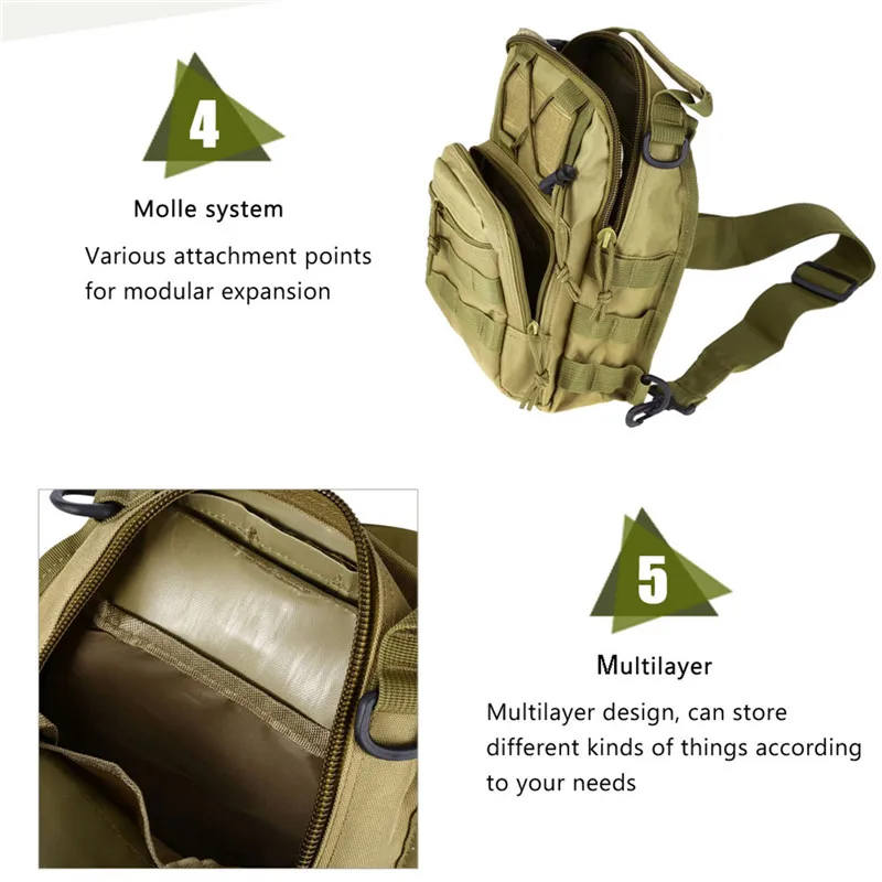 Мужская тактическая нагрудная сумка, камуфляжная портативная Спортивная повседневная Водонепроницаемая нагрудная сумка на молнии с пряжкой для мужчин, 2021
