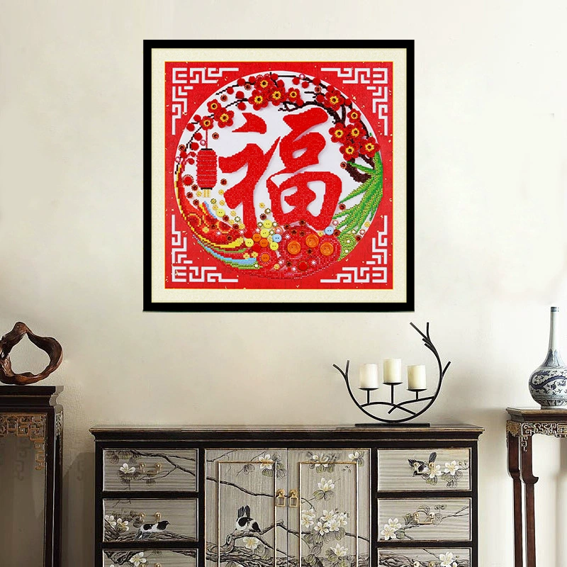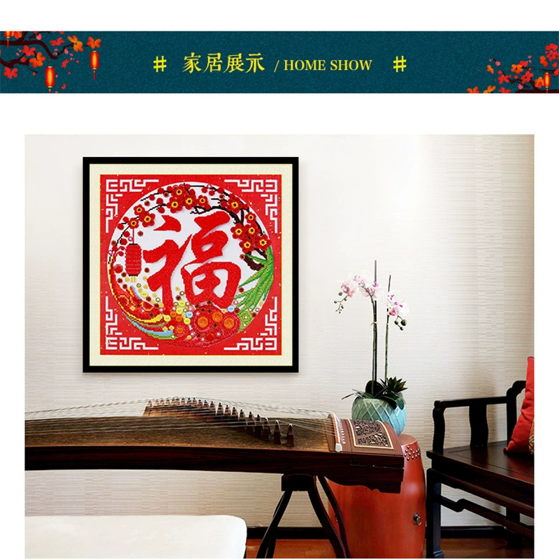 Алмазная вышивка, китайский иероглиф FU, китайский красный, золотые деньги FU, особая форма, полноразмерная картина, вышивка крестиком