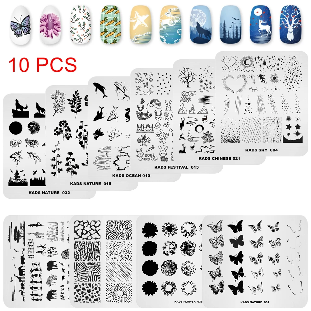 KADS 10 шт. популярный дизайн ногтей штамп набор тарелок природа китайская мода изображения ногтей штамповки пластины комплект