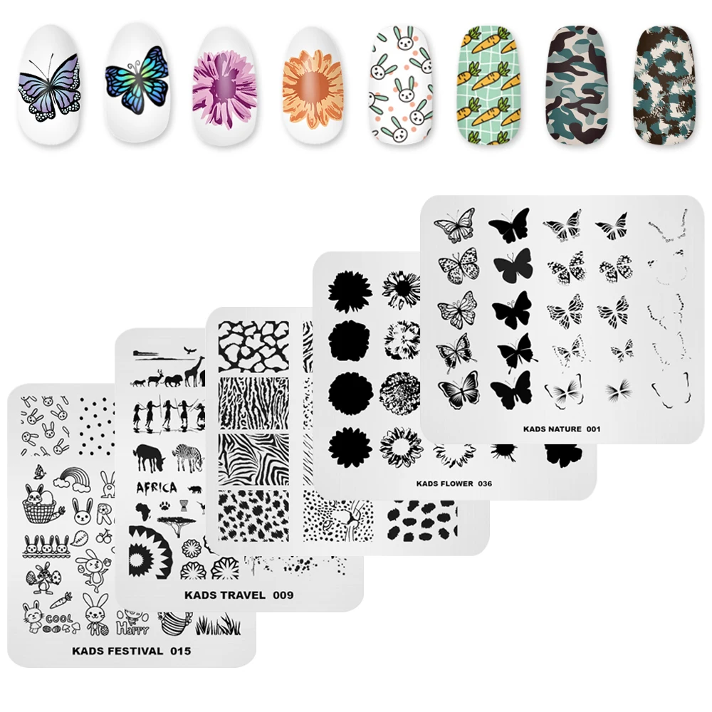 KADS 10 шт. набор штамповочных пластин для ногтей шаблоны для дизайна ногтей пластина бабочка цветок листья Волк Дизайн китайский Маникюр Трафарет Инструмент