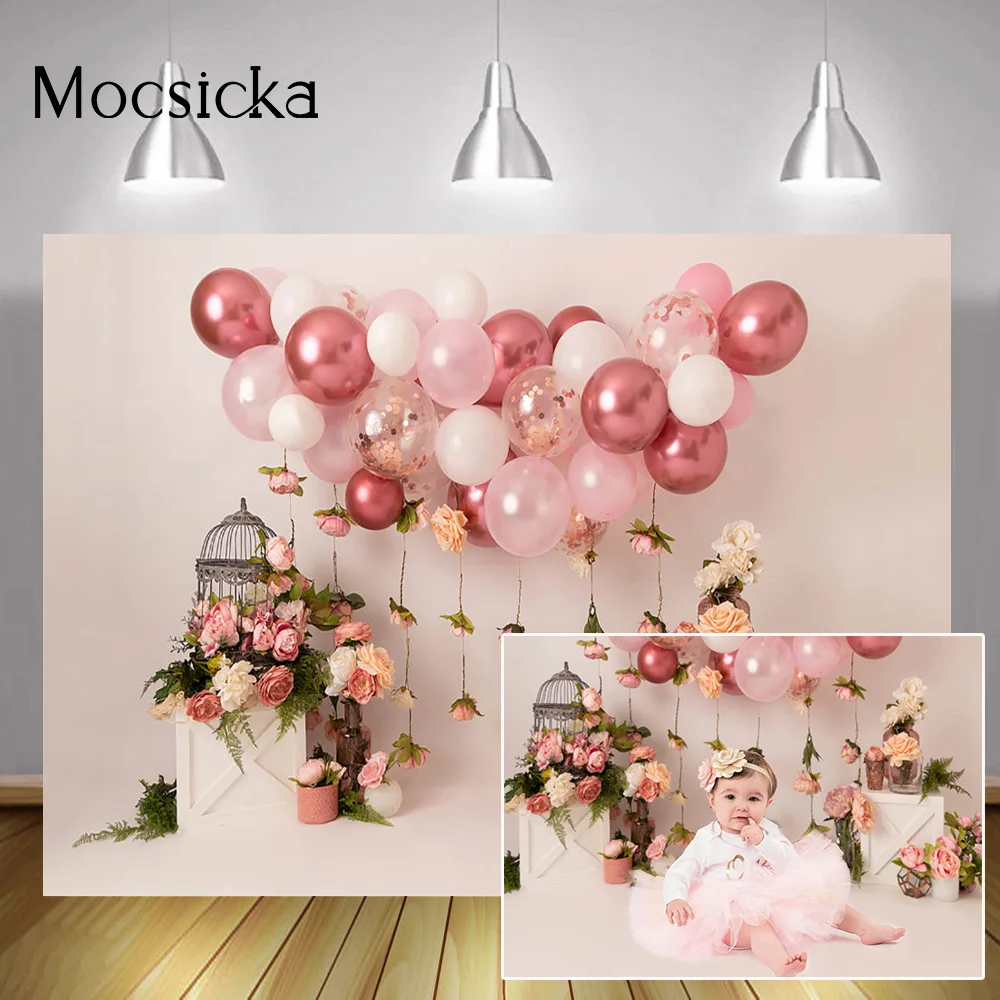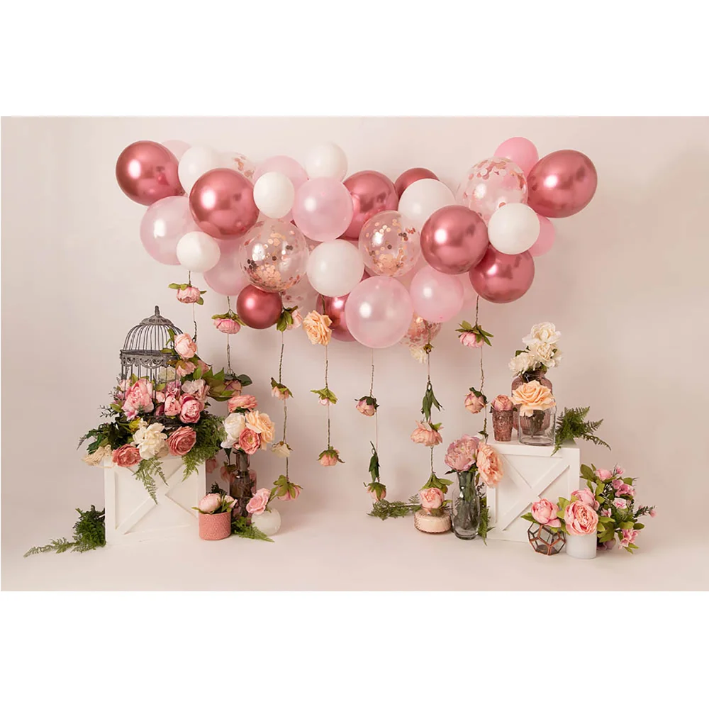 Детский портретный фон с цветочным рисунком для новорожденных на день рождения торт разбить фон с воздушными шарами весенние цветы птичья клетка реквизит для фотосъемки