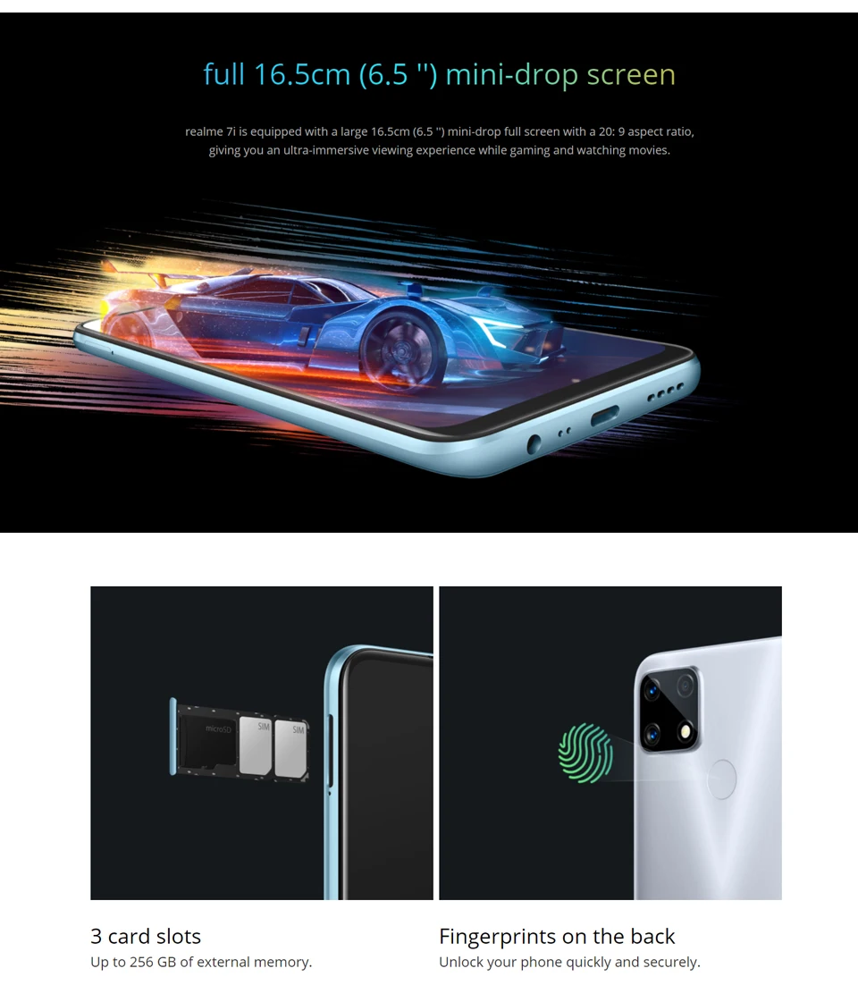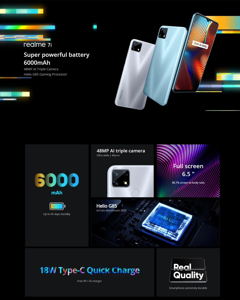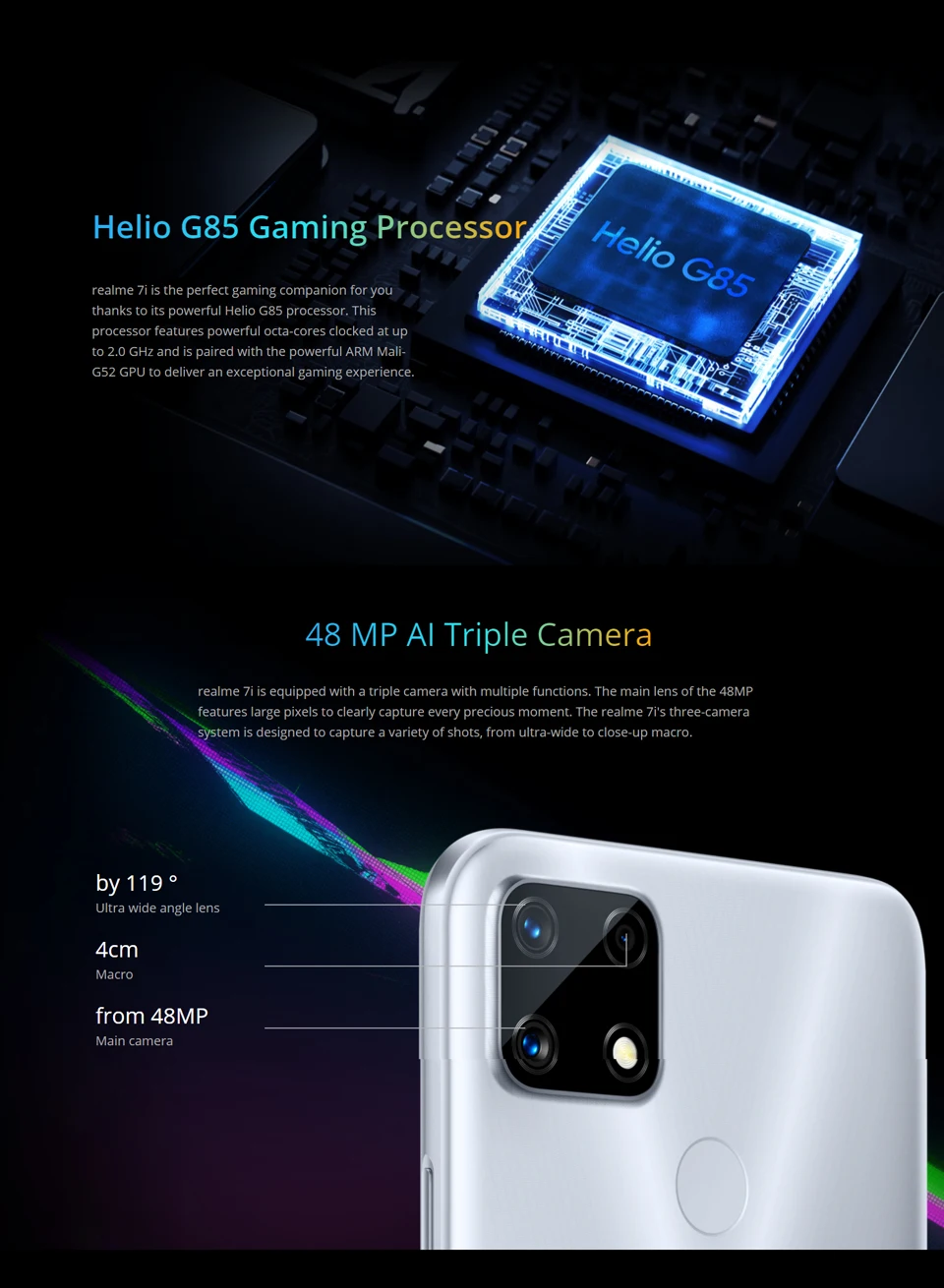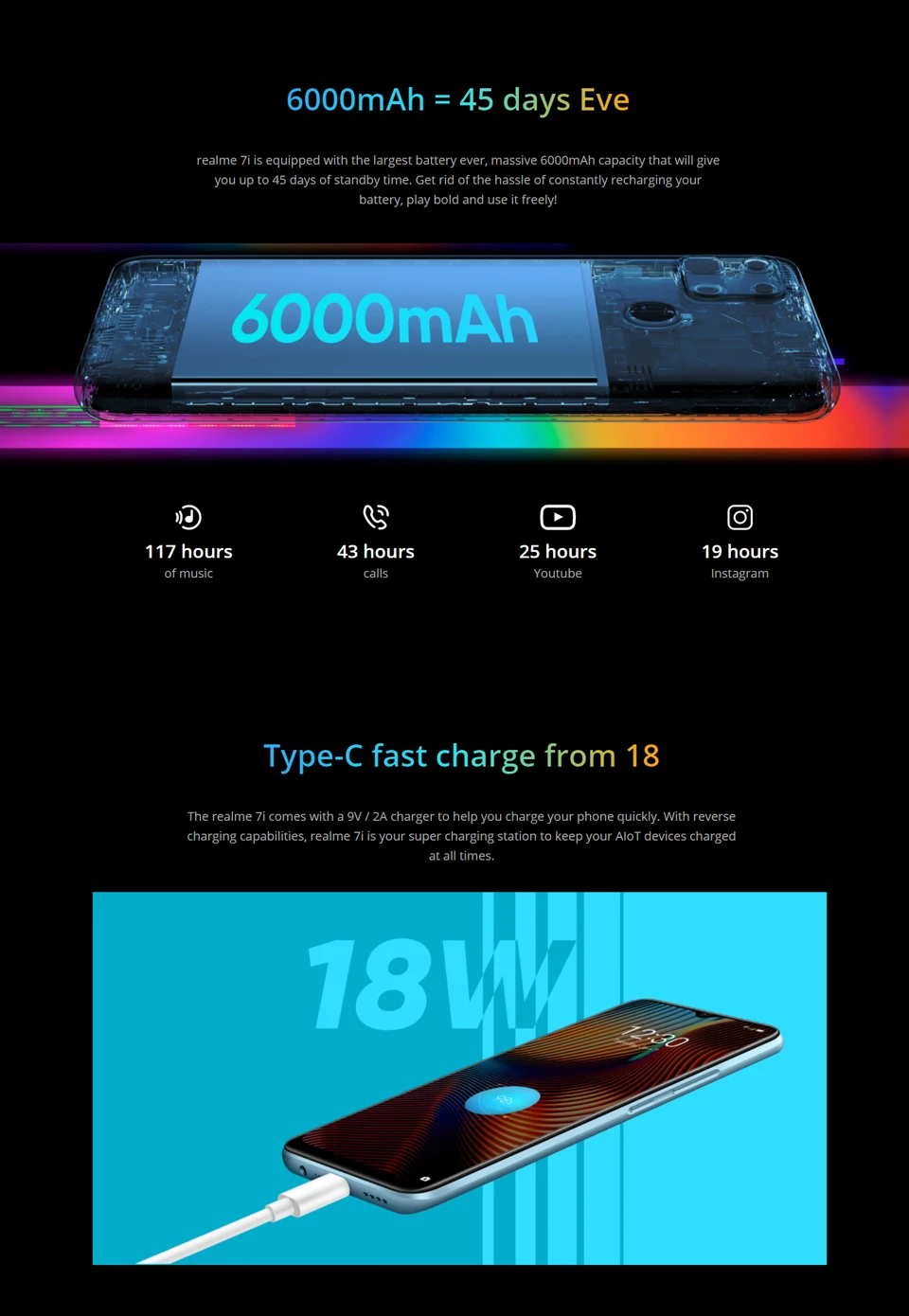 Смартфон Realme 7i, 6,5 дюйма, 4 + 64 ГБ, 48 МП, 6000 мА ч, 18 Вт