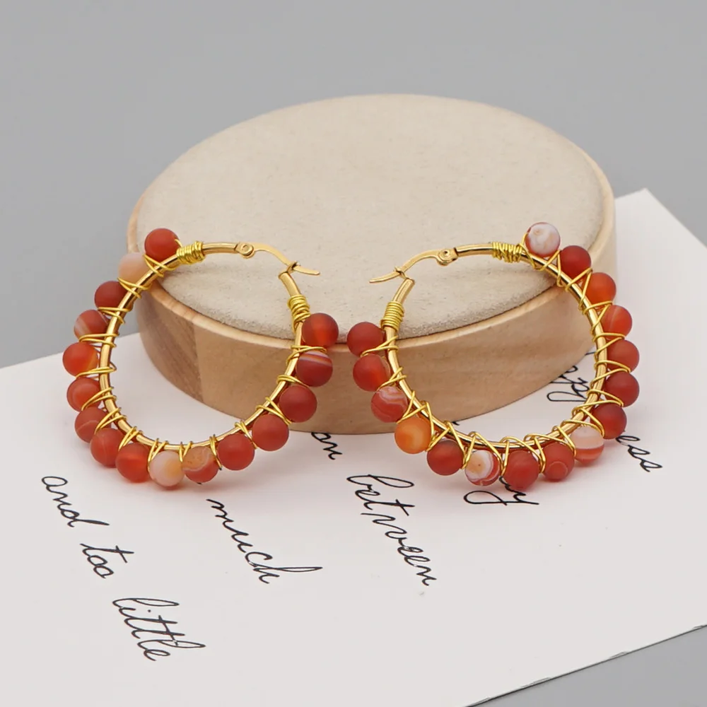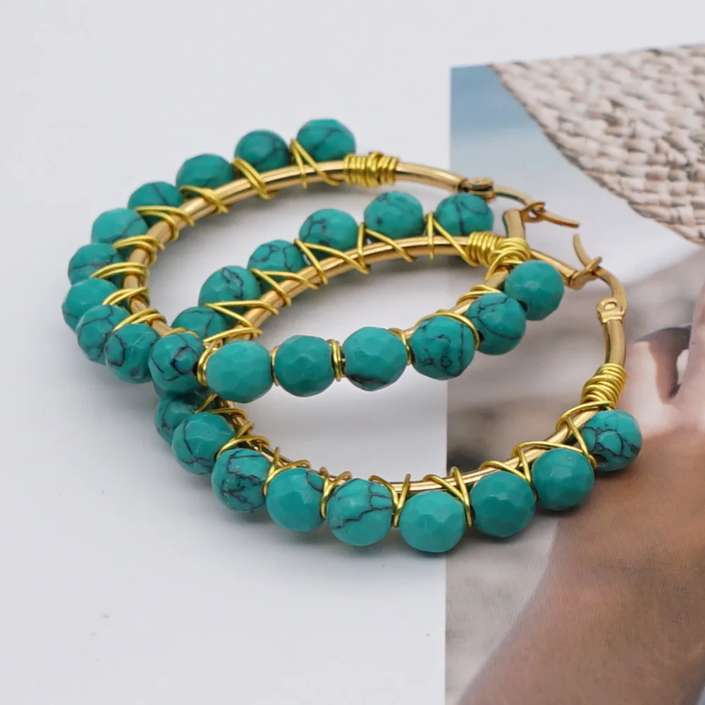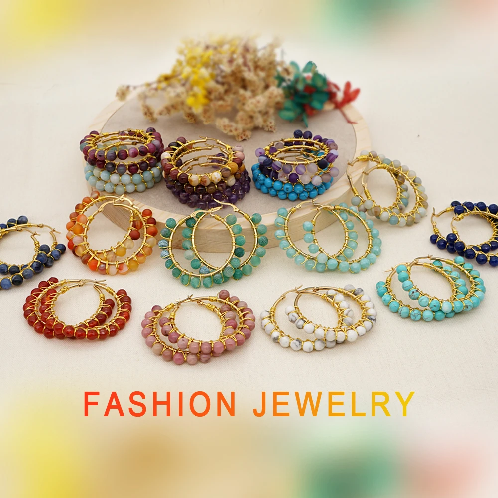 Go2Boho кольцо для ушей из натурального камня, серьги Aros, женские серьги-кольца, Винтажные Ювелирные изделия, модные украшения из нержавеющей стали, Золотые круглые