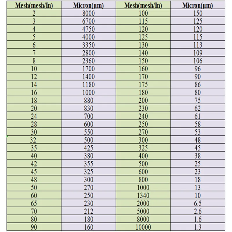 Фильтрующий мелк sap meestal gebruik tussen 200-250 Mesh/In.