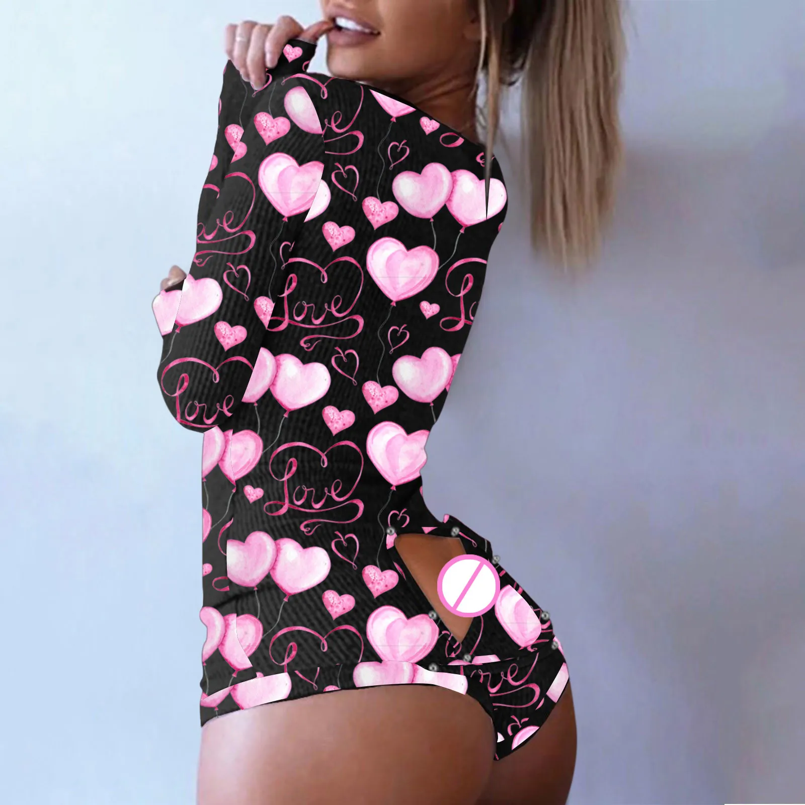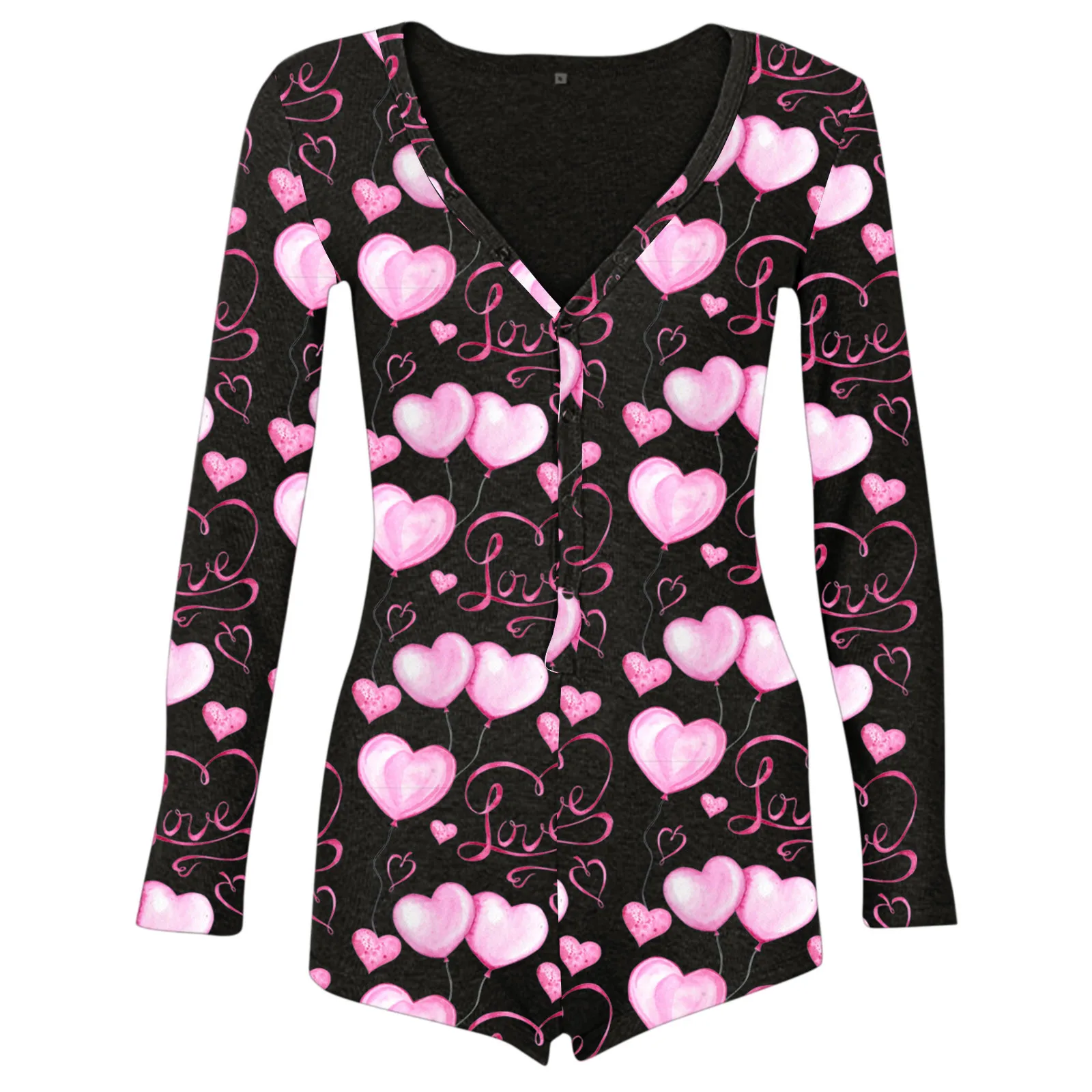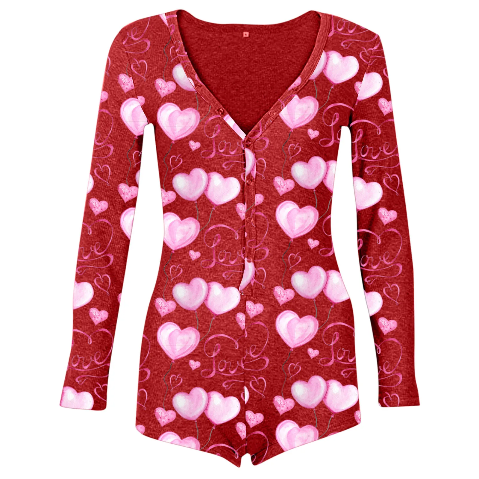 Комбинезон женский на пуговицах, пижама-комбинезон на День святого Валентина, рот, губы, с принтом в форме сердца, для взрослых