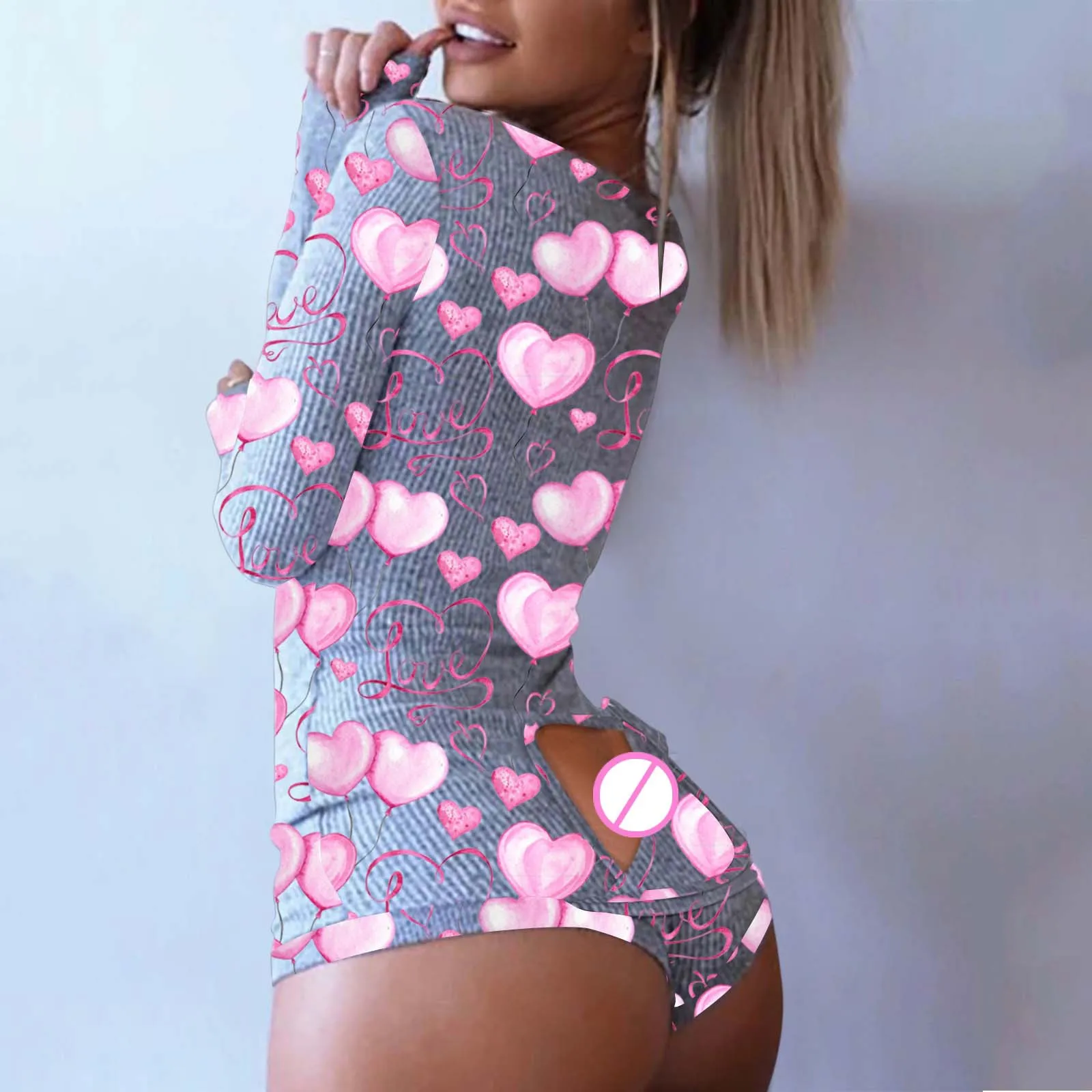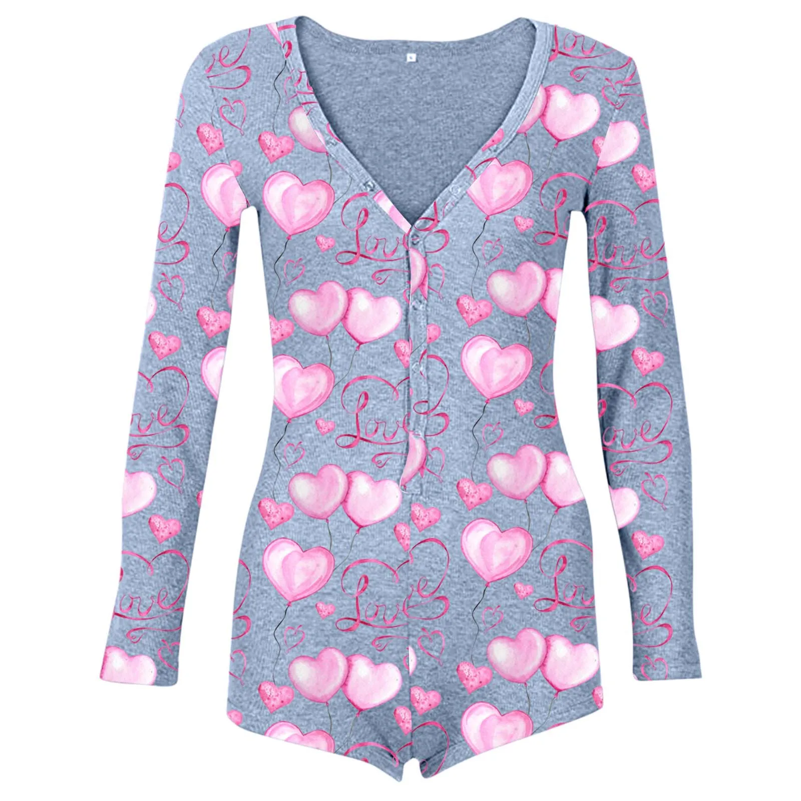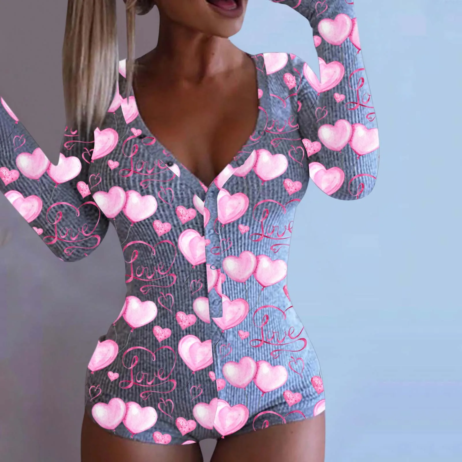Комбинезон женский на пуговицах, пижама-комбинезон на День святого Валентина, рот, губы, с принтом в форме сердца, для взрослых