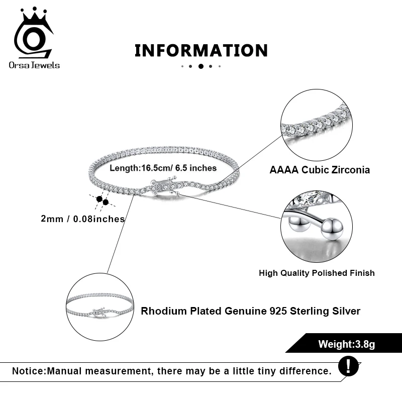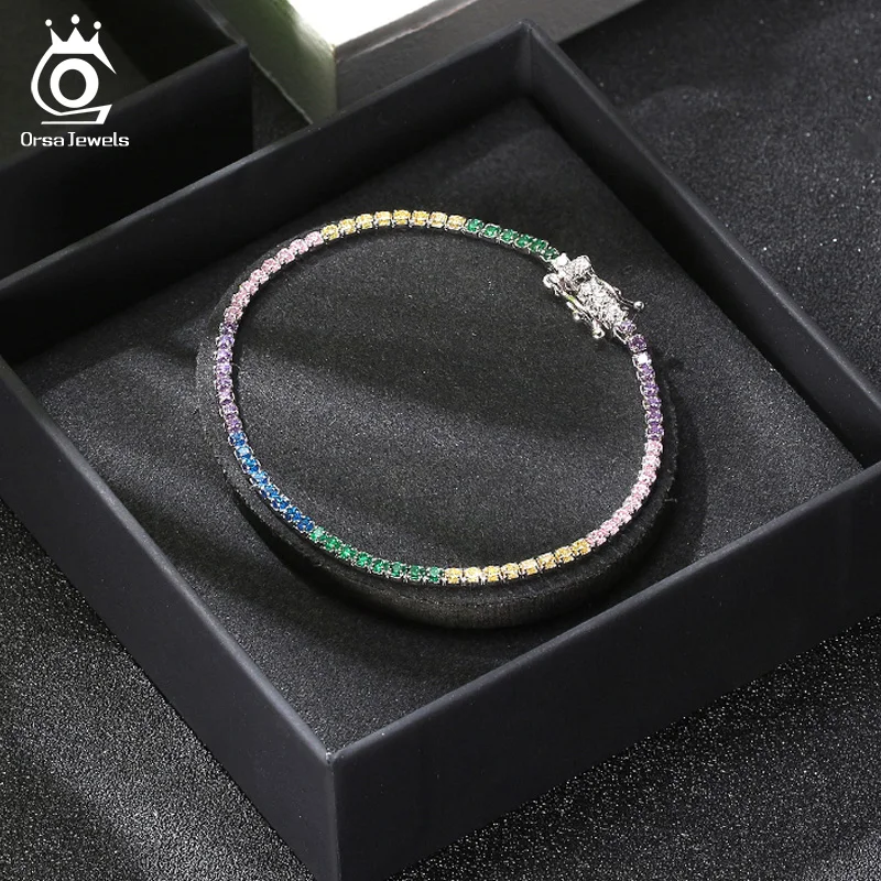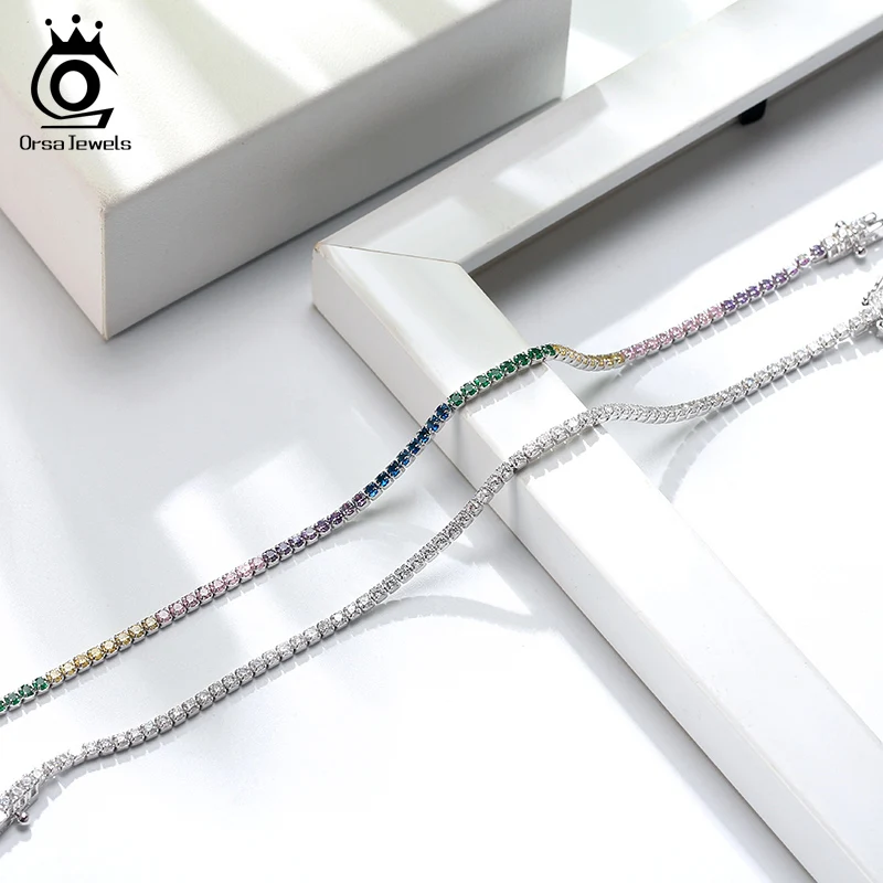 ORSA JEWELS Аутентичные браслеты из серебра 925 пробы для девочек, прозрачный серебряный браслет с кубическим цирконием, ювелирная цепочка для свиданий SB61