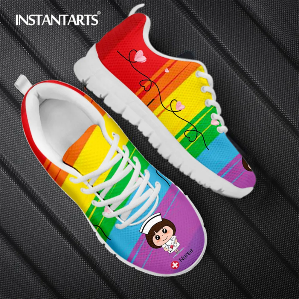 Женские кроссовки со шнуровкой INSTANTARTS, разноцветные кроссовки на плоской подошве с принтом в виде медсестры и девушки