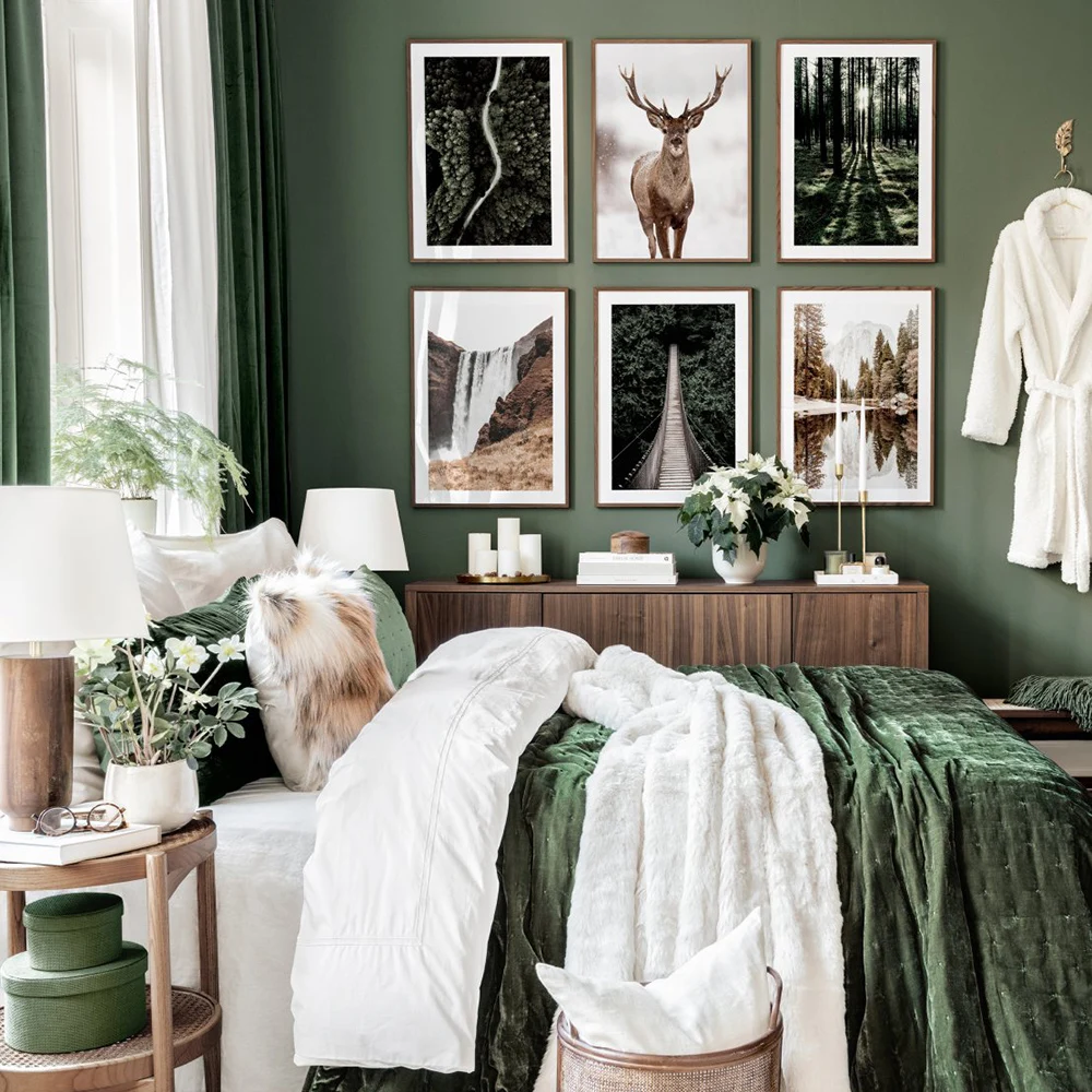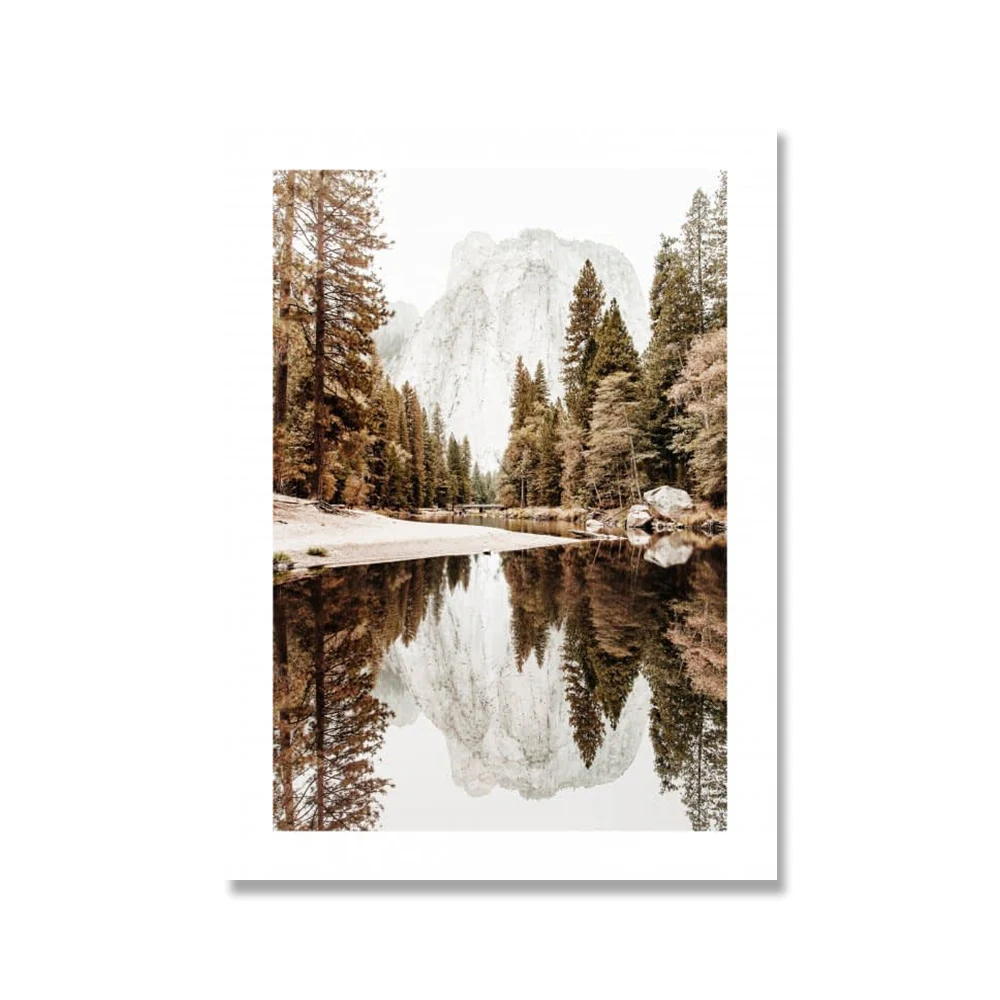Горный пейзаж животных Картина с оленем природа снег дерево на озере плакат в скандинавском стиле Nordic Wall Art Холст живопись оптовая продажа для домашнего декора