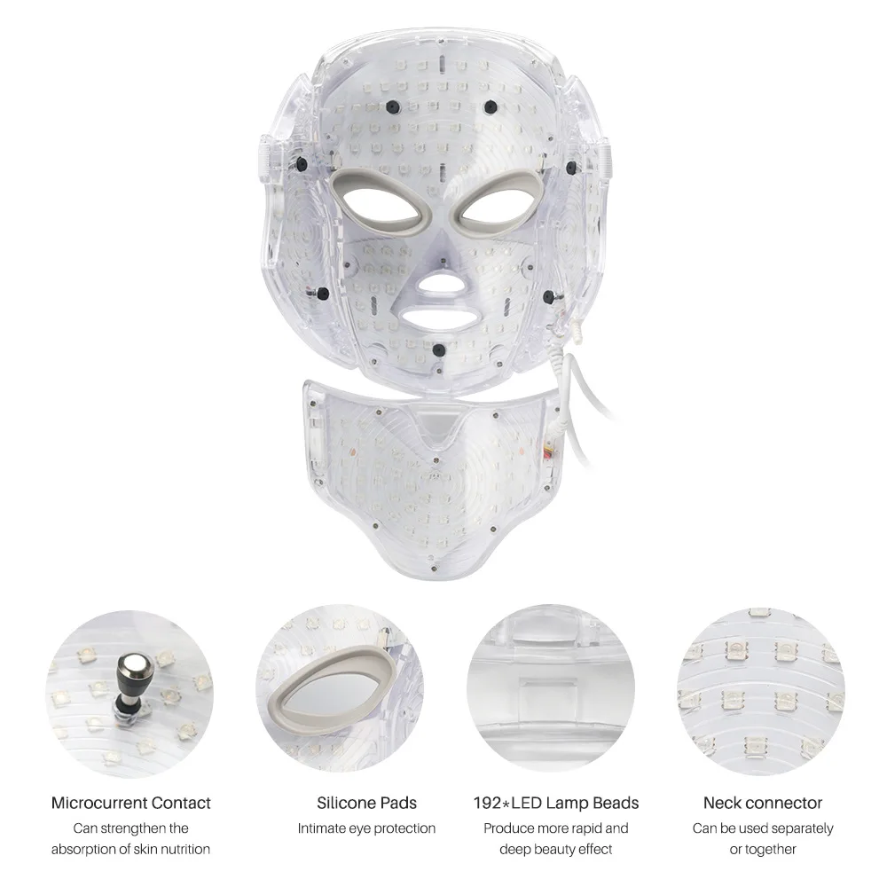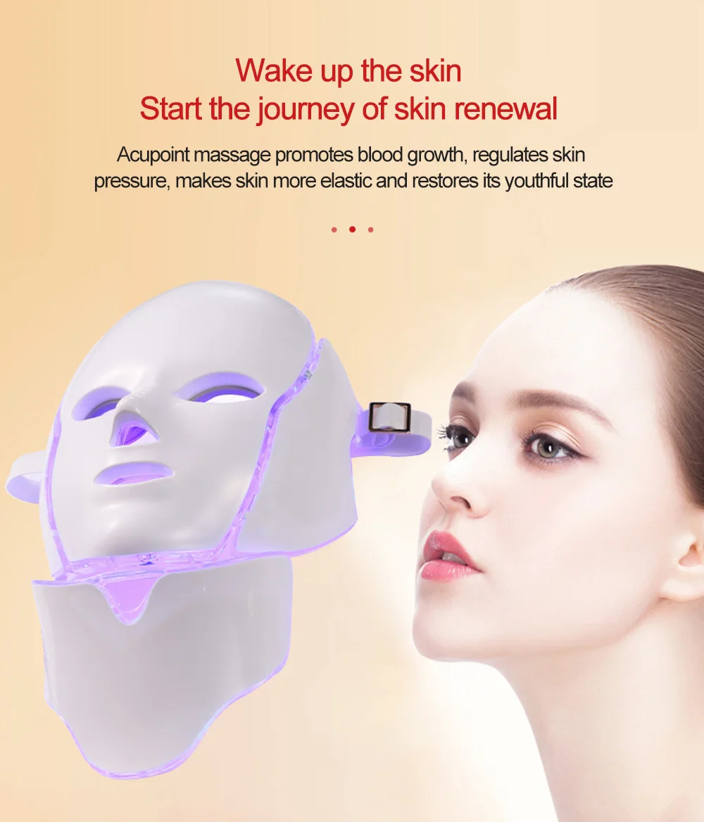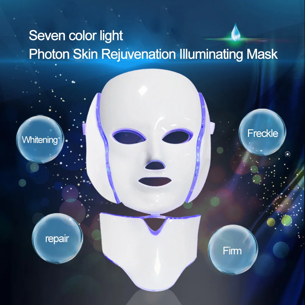 Маска для лица с подсветильник Wakeforyou, 7 цветов, омоложение кожи шеи, уход за лицом, Лечение красоты, лечение акне, отбеливание