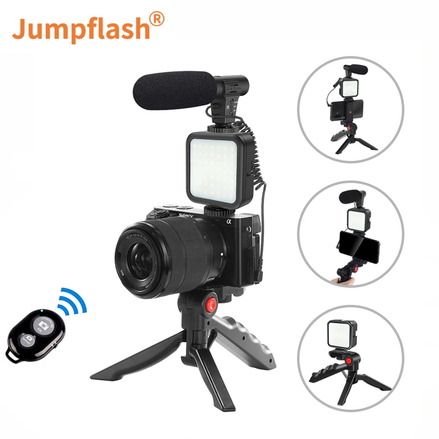 Набор для съемки Jumpflash Vlog, студийный комплект с микрофоном, со светодиодной подсветильник кой, штатив для смартфона, камеры, видеозаписи