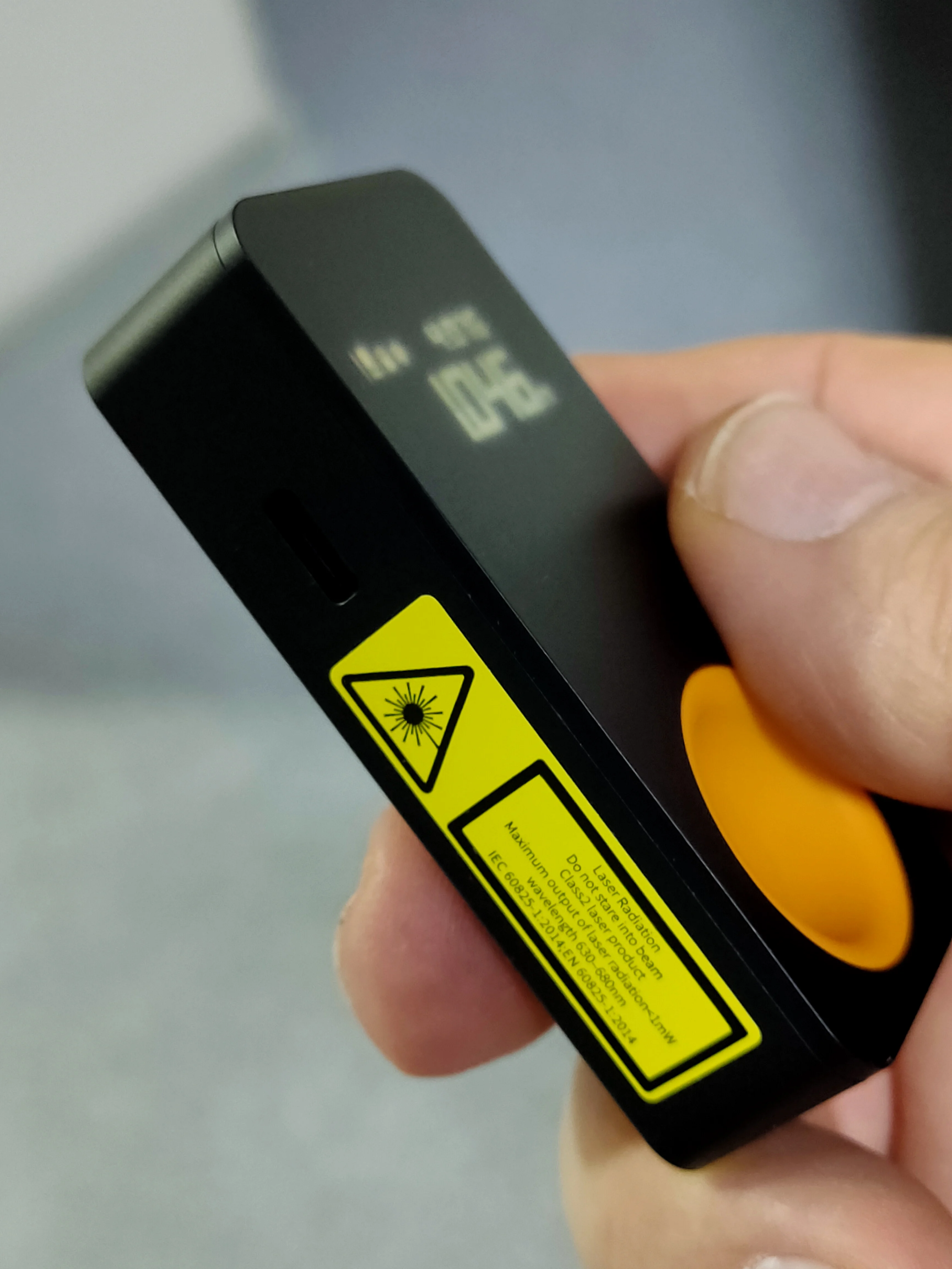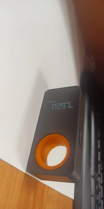 Удобный девайс. Достаточно точный. Показывает всё в метрах и его тысячных долях. Т. е. сантиметры будут по-любому после запятой. Лёгкий, кольцо удобно даже просто держать и крутить в руке (прямо "стресс-бол" )) ). Коннектится с Ксиаомивским приложением Home и позволяет делать целую серию записей с измерениями, а также составить простой план и промерить все линии в нём. Заряжается от USB-c. В глаза лазером, разумеется, не светить! Включается единственной кнопкой долгим нажатием. Потом каждое измерение – первой нажатие кнопки для включения лазера и второе для замера и циферок на экране. Экран, кстати, классный. Цифры большие и как будто возникают на самом корпусе. Через приложение можно настроить метры/футы и от какой части самого девайса производить замеры – от передней или задней (по умолчанию) границы.