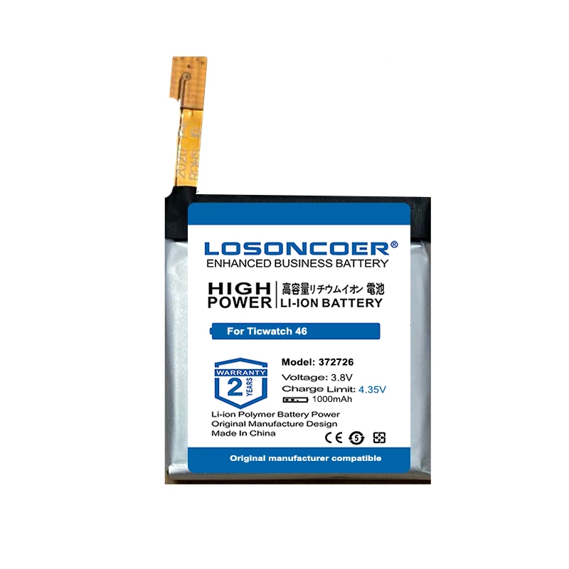 LOSONCOER 0 цикл 100% новый 1000mAh часы батарея 372726 для Ticwatch 1 46 мм батарея