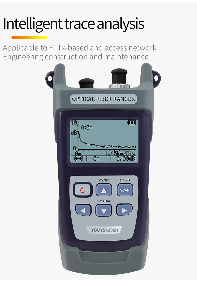 SGOT04 / YYS305N/AUA28U isПортативный оптический поисковик неисправностей, используя принцип OTDR и интегрируясь с мощным программным обеспечением анализа, который может быстро и точно определить местоположение и тип ошибки оптического волокна.