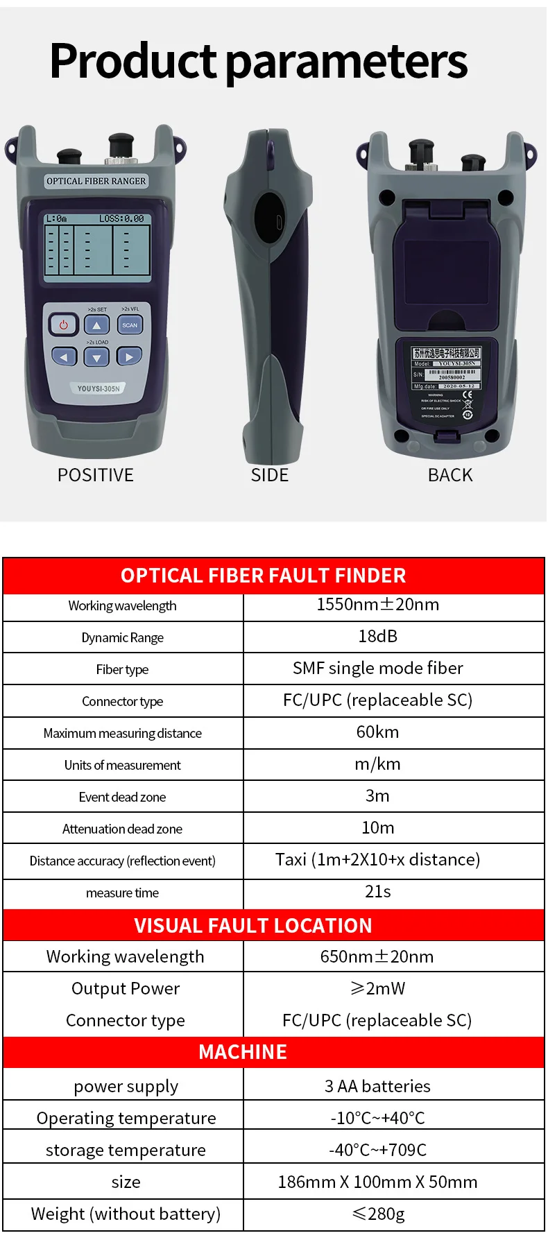 Мини OTDR YYS-305N SGOT04 AUA28 1550nm 18dB + VFL 60KM волоконно-оптический Волоконно-оптический рефлектометр встроенный VFL с сенсорным портом FC SC