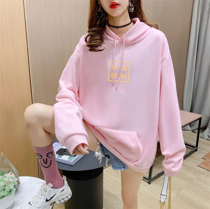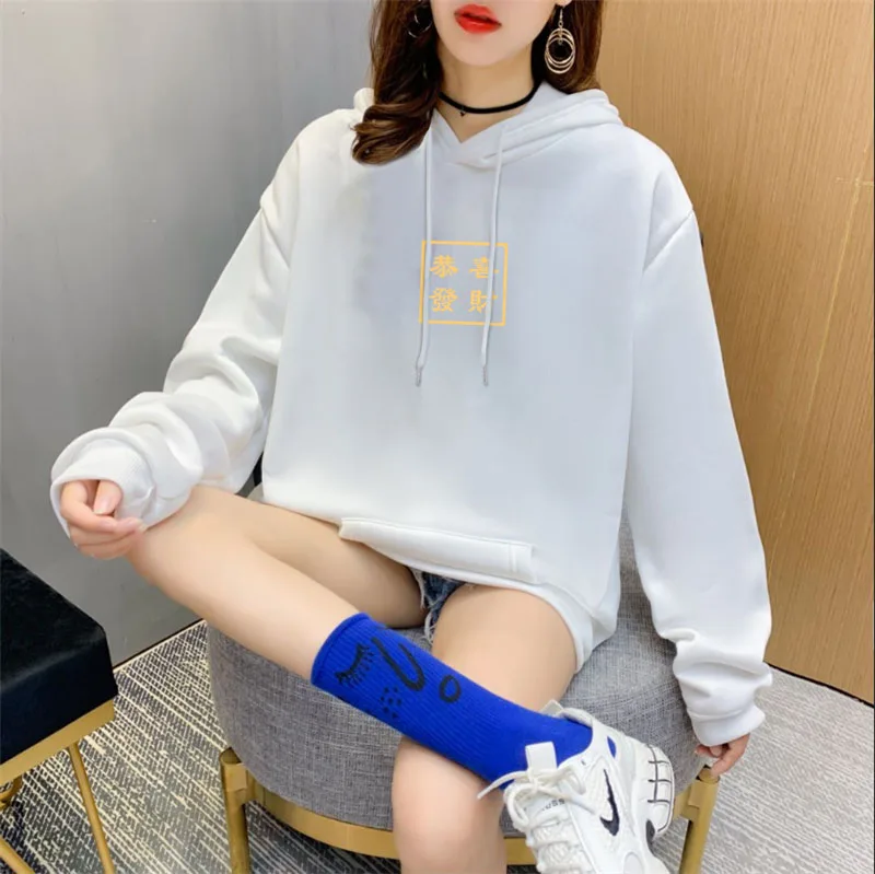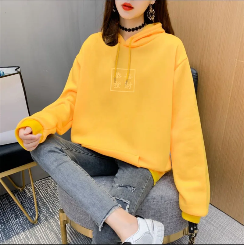 Пуловер женский с капюшоном, свитшот с длинным рукавом и флисовой подкладкой, весна-зима 2021