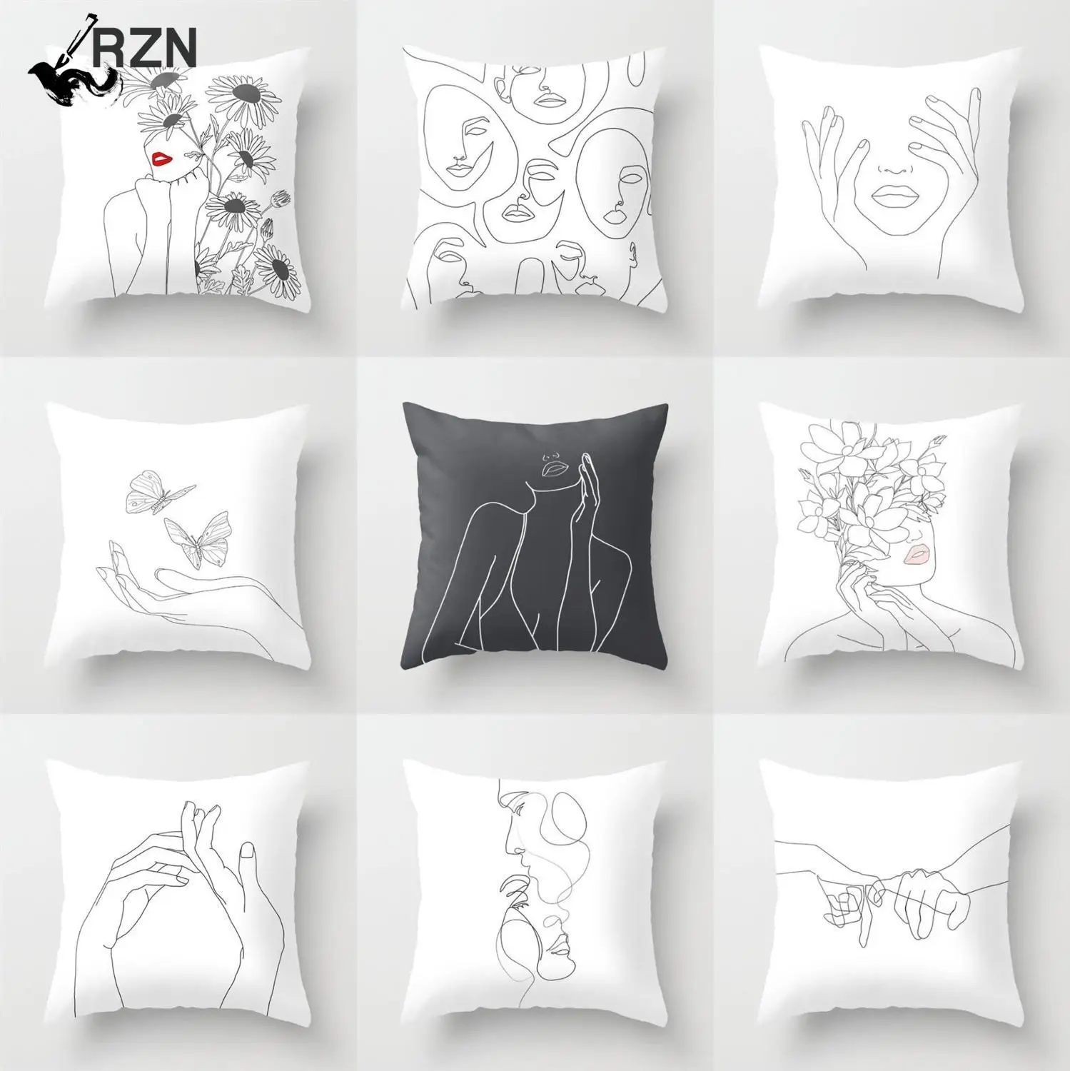 Квадратные искусственные наволочки, черно-белые домашние наволочки с принтом, наволочки для диванных подушек