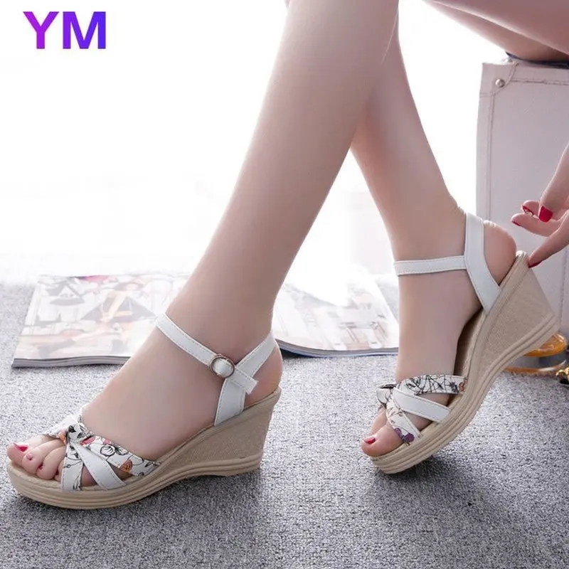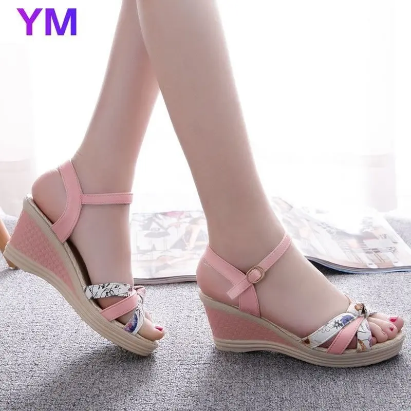 Туфли женские сандалии летние сандалии на танкетке Женская обувь в богемном стиле модные классические Нескользящие сандалии с пряжкой обувь для пляжа Новинка 2021