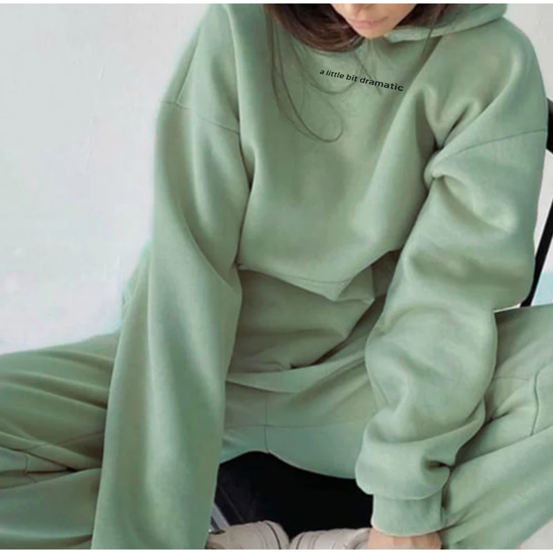 Костюм спортивный женский флисовый с надписью, утепленный комплект спортивной одежды с капюшоном, Свитшот в стиле оверсайз с длинным рукавом, повседневные штаны, костюм, 2021