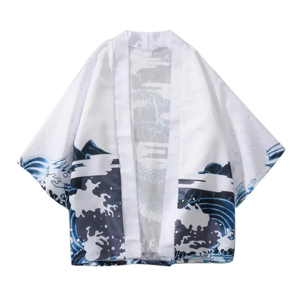 Кимоно мужское, летнее, с рукавами 34 и волнистым драконом