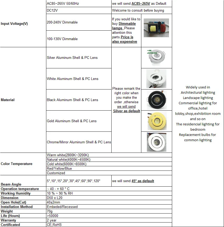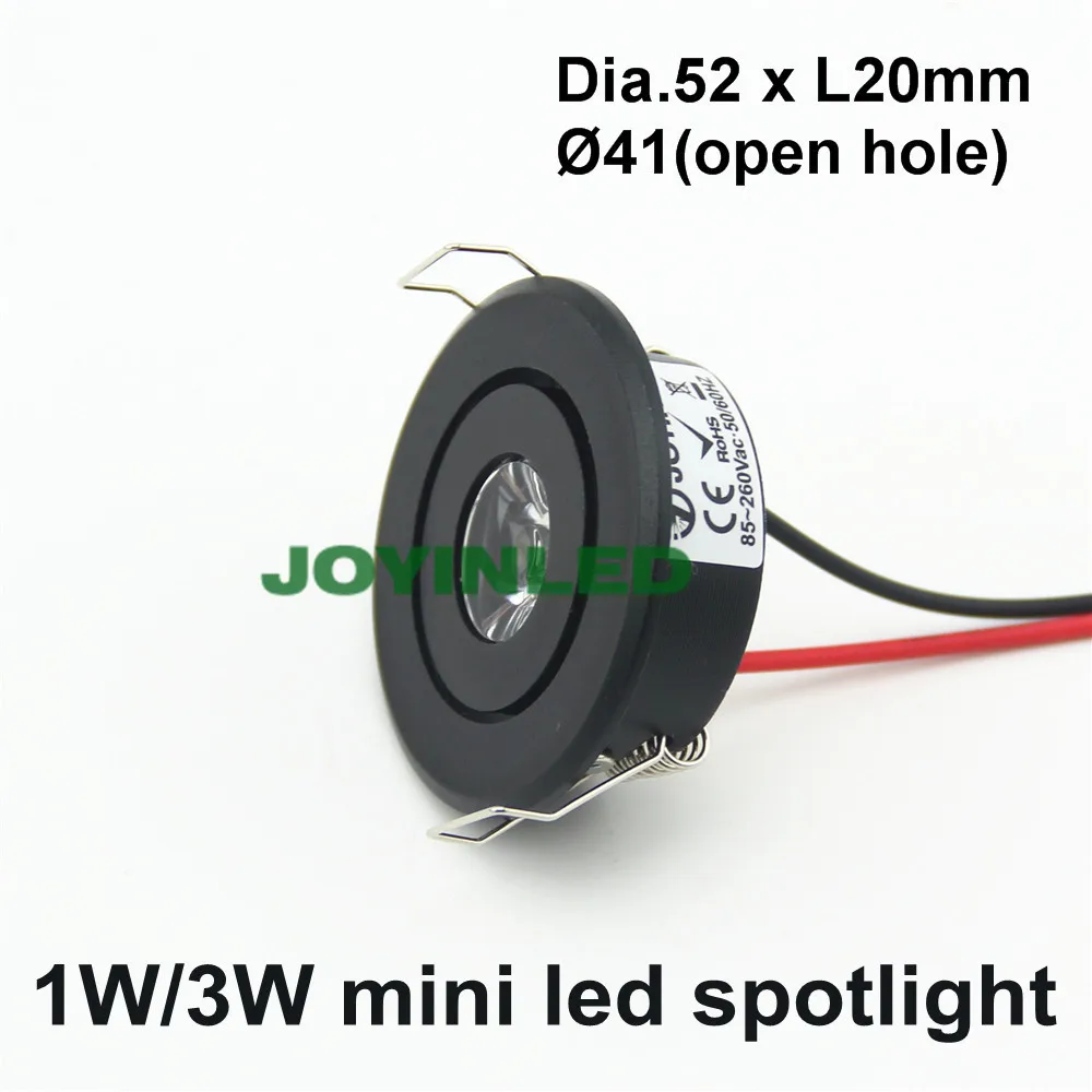 Светодиодный мини-светильник, 3 Вт, 1 Вт, регулируемый Точечный светильник, встроенный светильник s Ac85-265v, потолочный алюминиевый светильник 52 мм