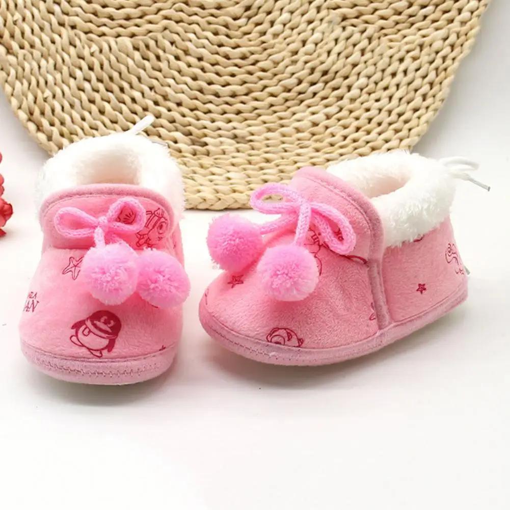 Осенне-зимние От 0 до 1 года для маленьких девочек; Мягкая теплая обувь для малышей Обувь изготовлена из высококачественной хлопковой ткани, которая мягкая, дышащая. Теплый и удобный. Подошва с круглым узором в горошек не скользит, ребенок не будет скользить и падать при ходьбе по гладкой поверхности. Обувь украшена помпонами-пуховиками; Красивая и модная обувь. Ваш ребенок будет выглядеть еще красивее и красивее при ношении этой стильной обуви. Эта стильная обувь идеально подходит для рождества, душа для новорожденных, первого дня рождения, Хэллоуина, свидания друзей и семейной церемонии. Наименование товара: детская обувь Материал: хлопковая ткань Пол: для маленьких девочек Стиль: Повседневный, модный Высота каблука: плоская подошва Сезоны: осень, зима Особенности: нескользящий, теплый, легкий, удобный Информация о размере: [Наш Размер 12]: нижняя часть Длина: 11 см/4,3 "(прибл.) [Наши Размеры 13]: нижняя часть Длина: 12 см/4,7 "(прибл.) [Наши Размер 14]: нижняя часть Длина: 13 см/5,1 "(прибл.) Примечания: Благодаря светильник и экрана Цвет Товара может быть s светильник ly отличается из-за характеристик монитора компьютера. Азиатские размеры отличаются от размеров США/ЕС/Великобритании, пожалуйста, сравните детальные размеры с вашими перед покупкой. Пожалуйста, определите размер обуви в соответствии с длиной Вашей стопы или внутренней длиной вашей обуви. Посылка включает в себя: 1 пара детских туфель