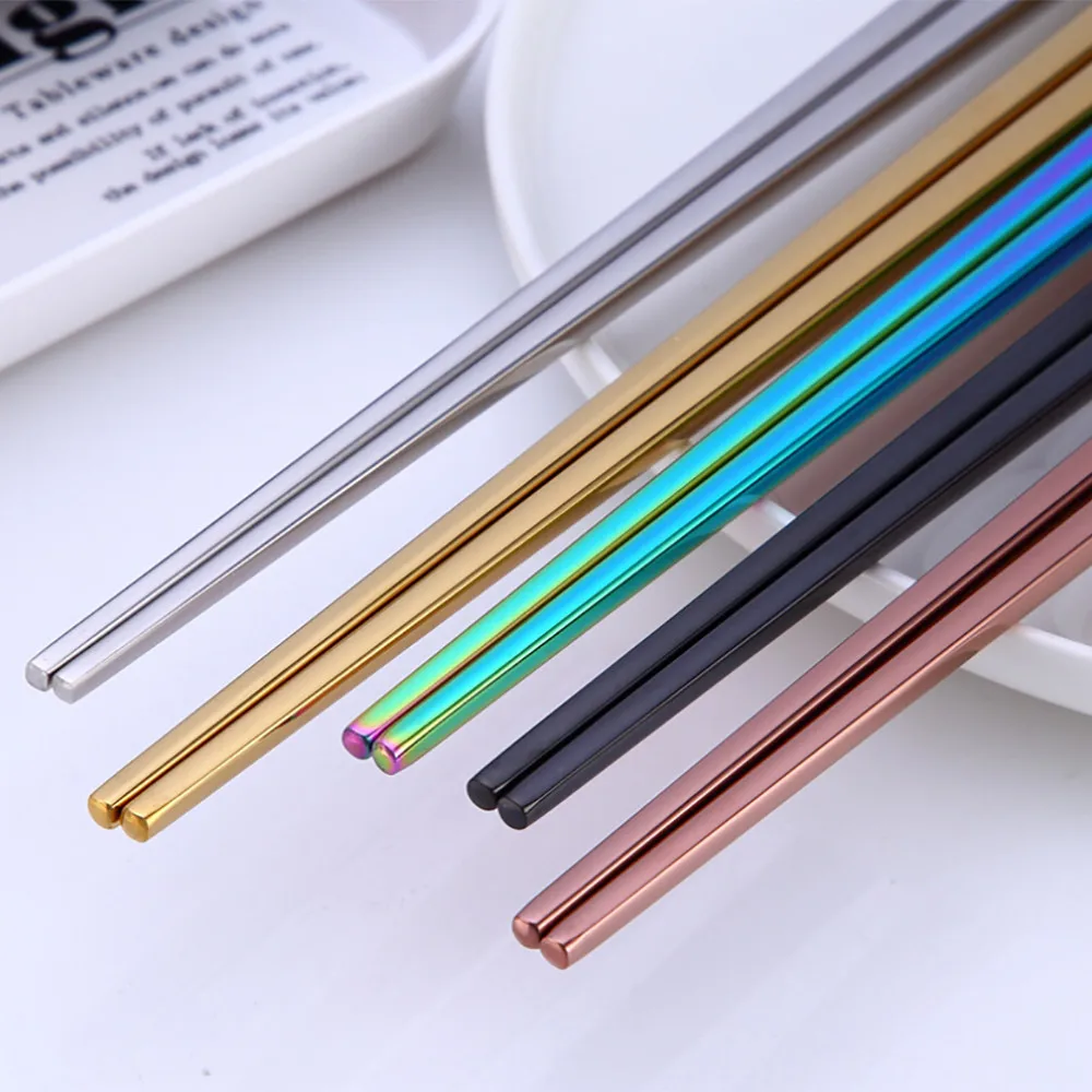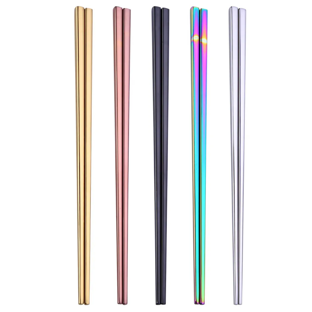 Палочки для еды из нержавеющей стали 304, 1 пара, цветные металличе...