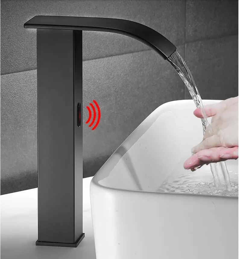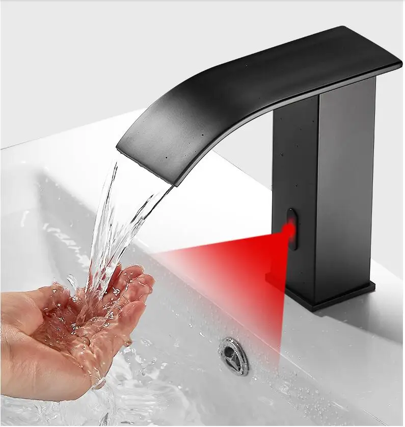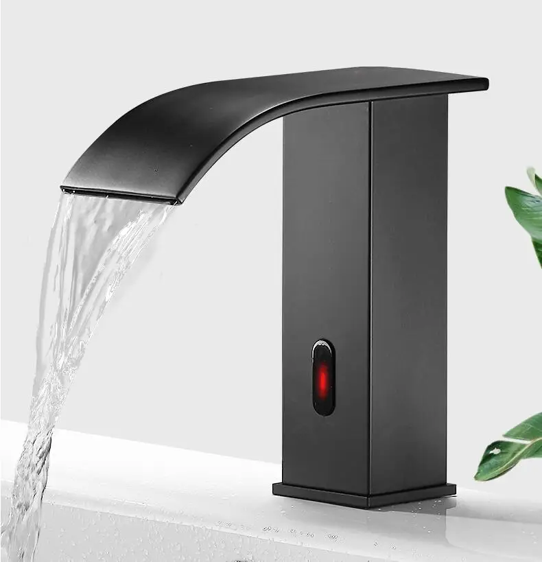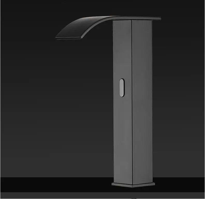 Смеситель для раковины из латуни, Черный кран-водопад для ванной комнаты