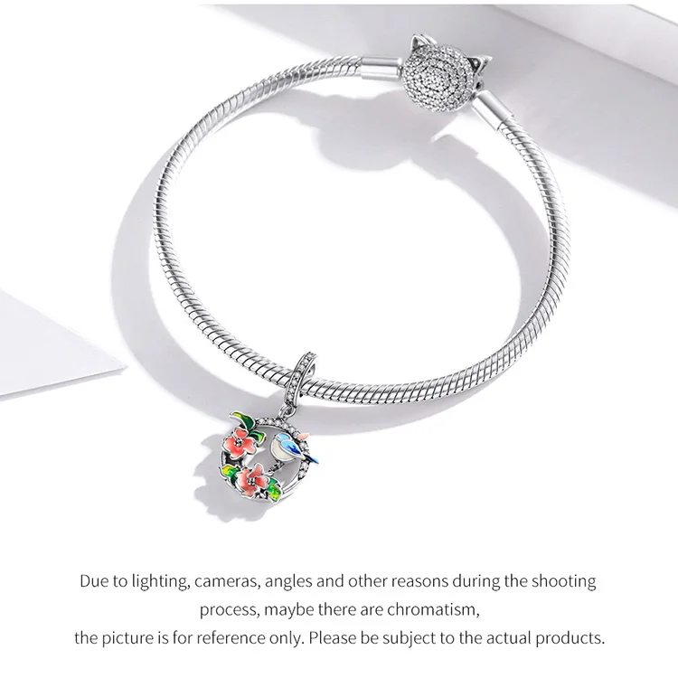 Bamoer, серебро 925 пробы, Цветные Птицы, цветы, листья, CZ, подвеска, весна, шарм, подходит для оригинального браслета, ювелирные аксессуары, сделай сам