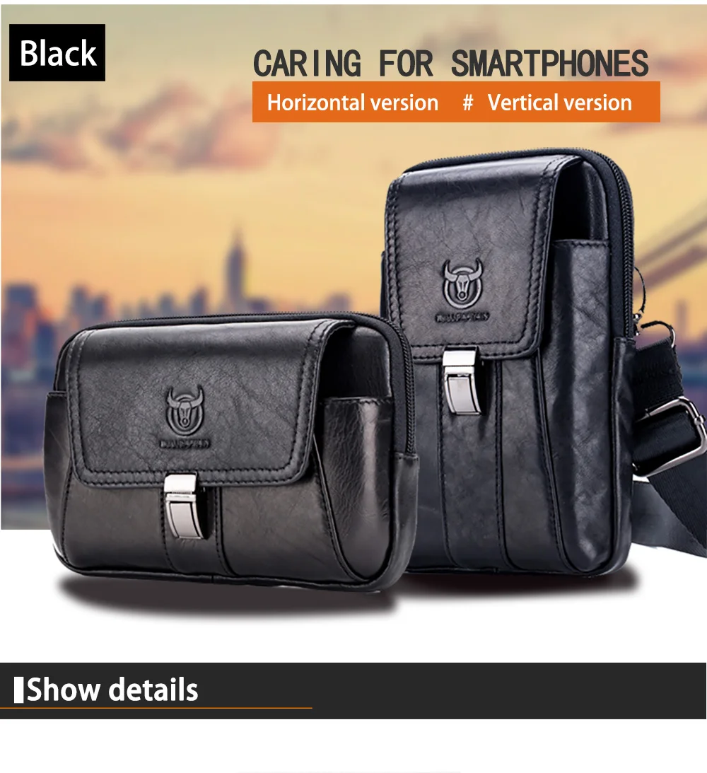 2021 Натуральная Воловья Кожа Мужская маленькая поясная сумка модный крючок поясной кошелек функциональный чехол для сигарет телефон кошелек тренд