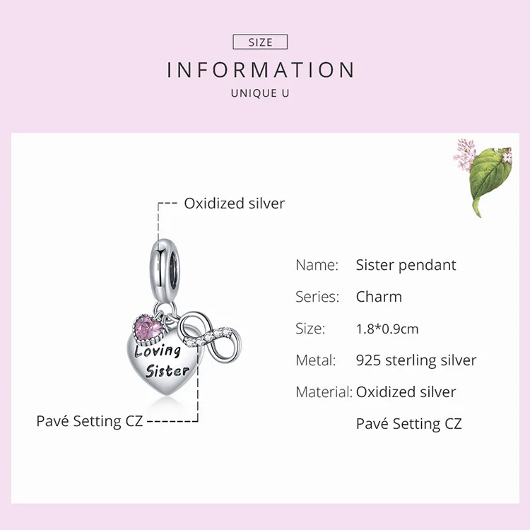 Bamoer семья любящая сестра розовое сердце 925 серебро бесконечное очаровательный кулон с надписью "Love" подходит оригинальный браслет ювелирные изделия BSC414