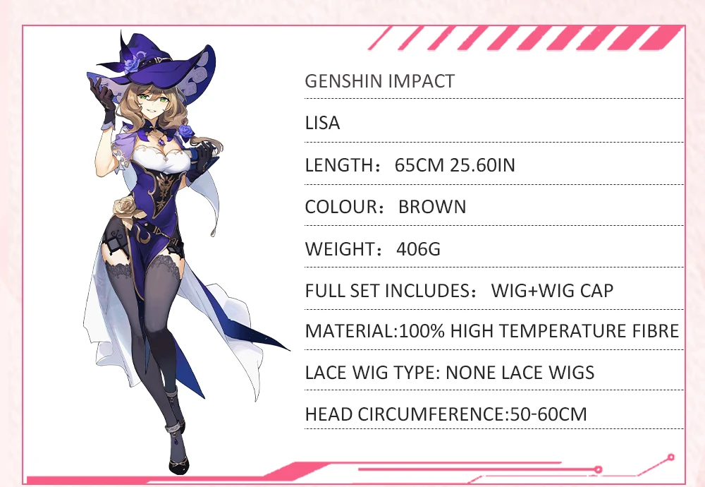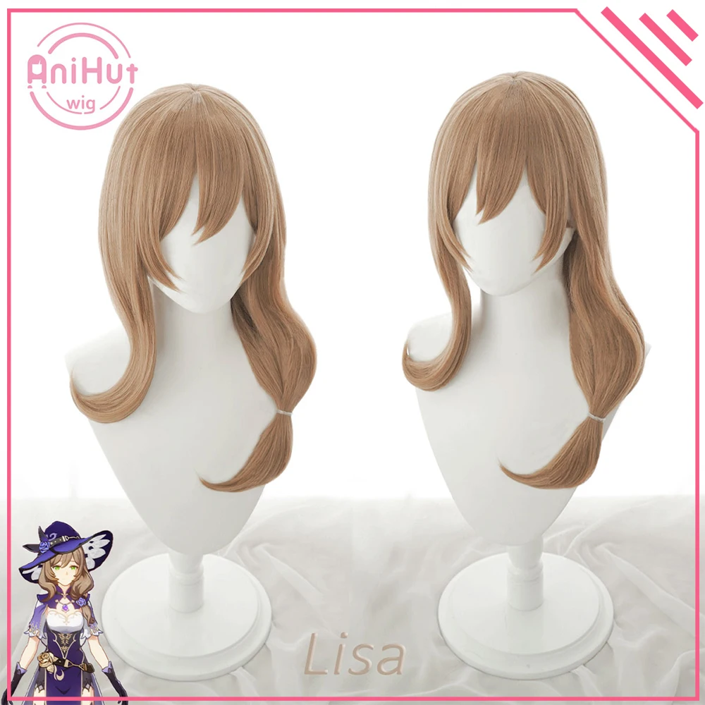 Anihutлиза косплей парик Genshin ударопрочный Косплей коричневые термостойкие синтетические волосы Лиза Хэллоуин косплей