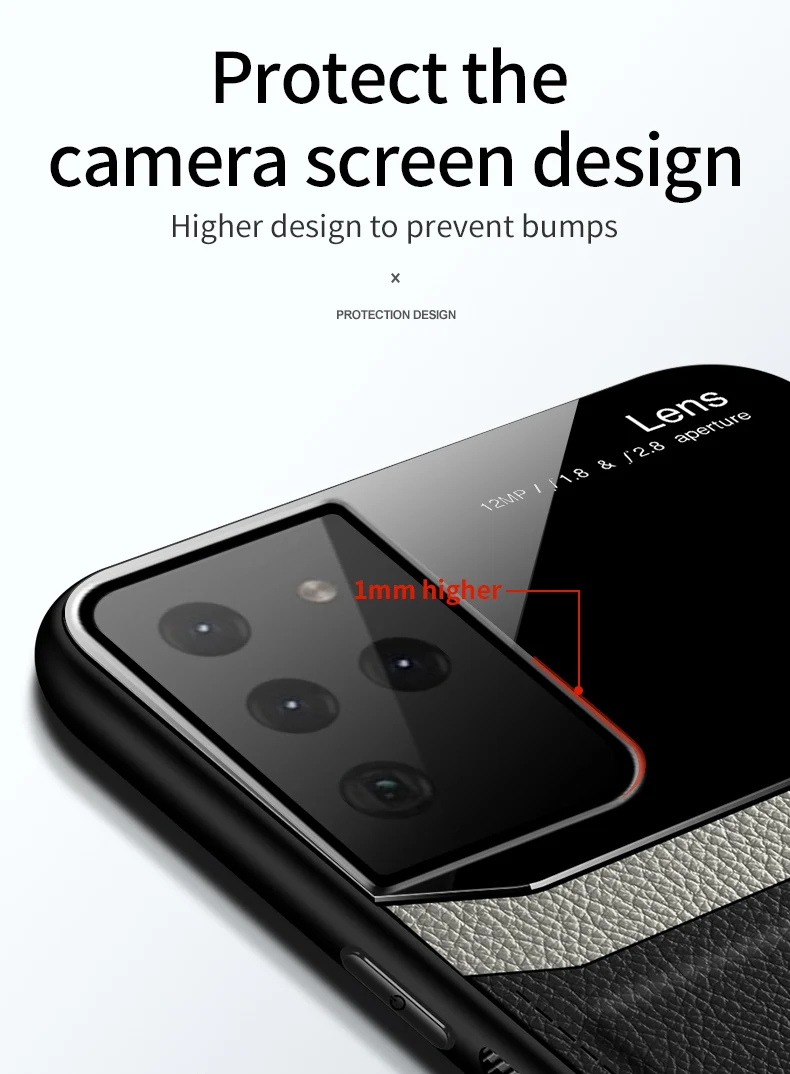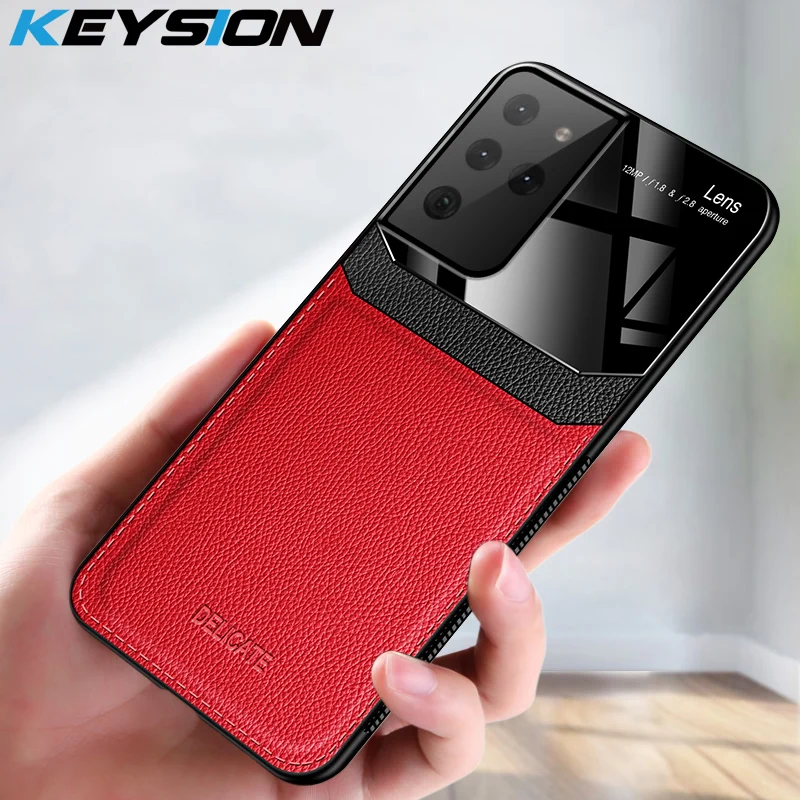 Ударопрочный чехол KEYSION для Samsung S21 Ultra S20 + Plus, модная кожаная зеркальная задняя крышка из закаленного стекла для телефона Galaxy S30