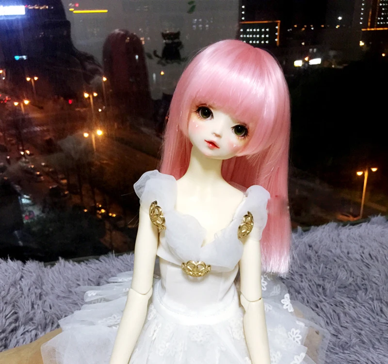 Парик для шарнирной куклы с прямыми розовыми волосами, 13, 14, 16, 18
